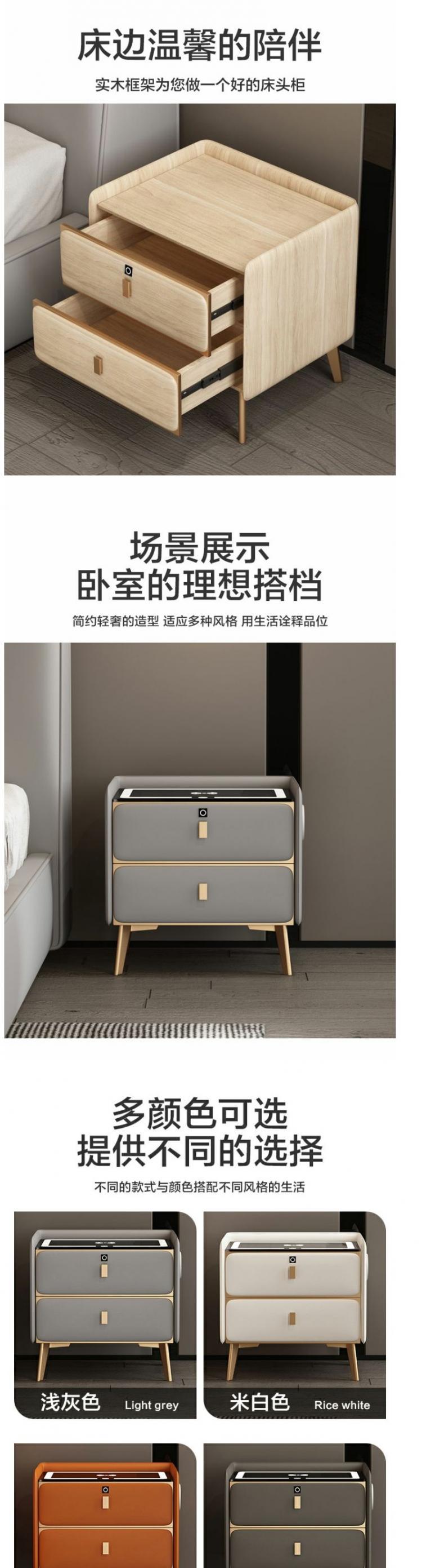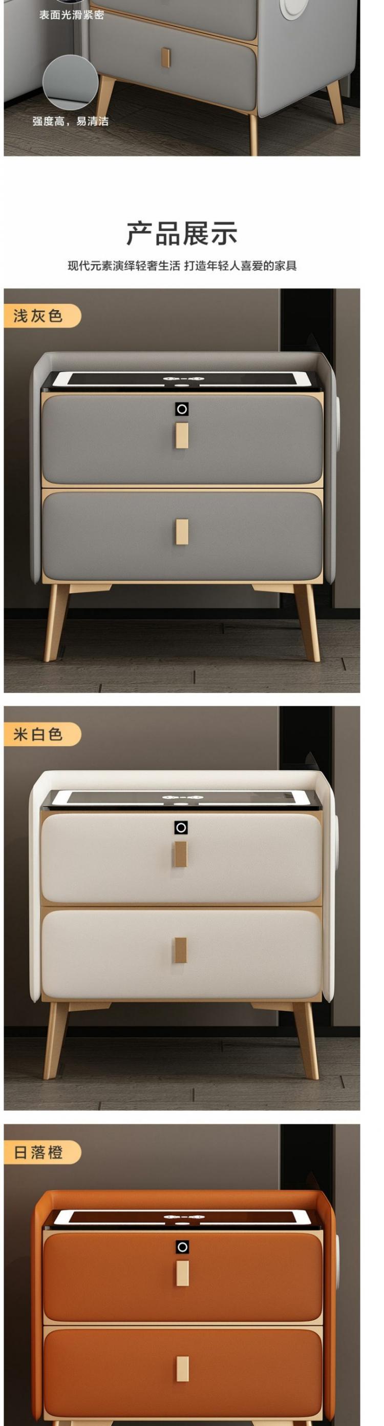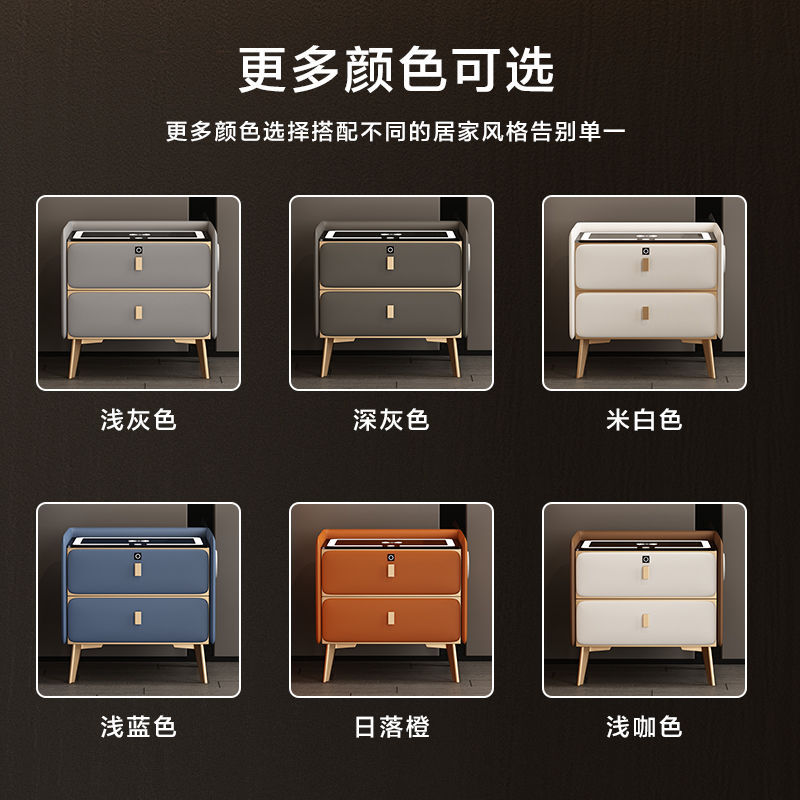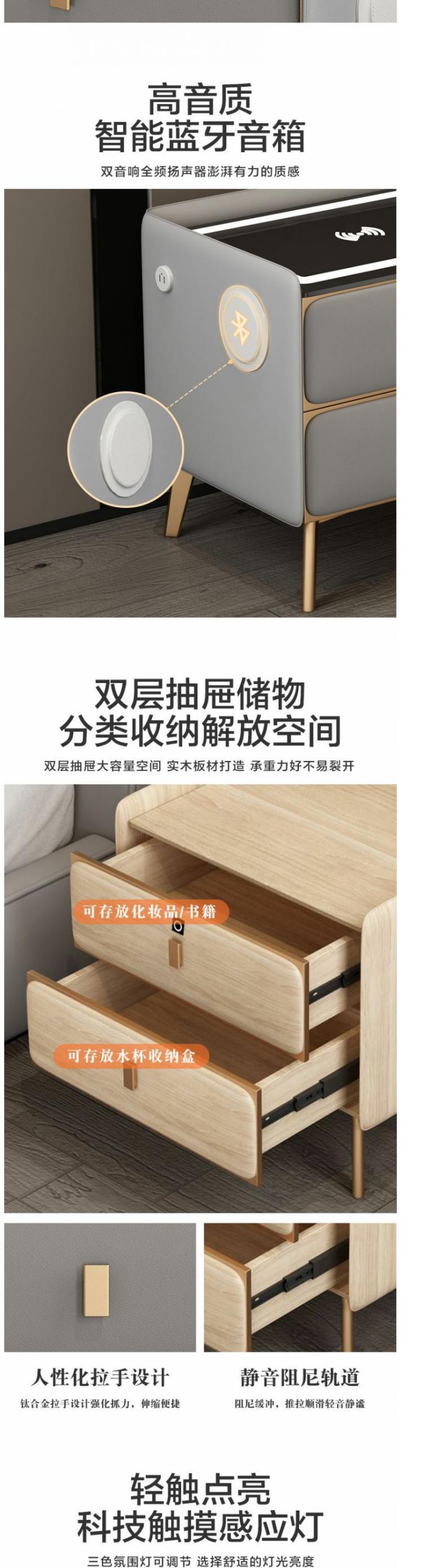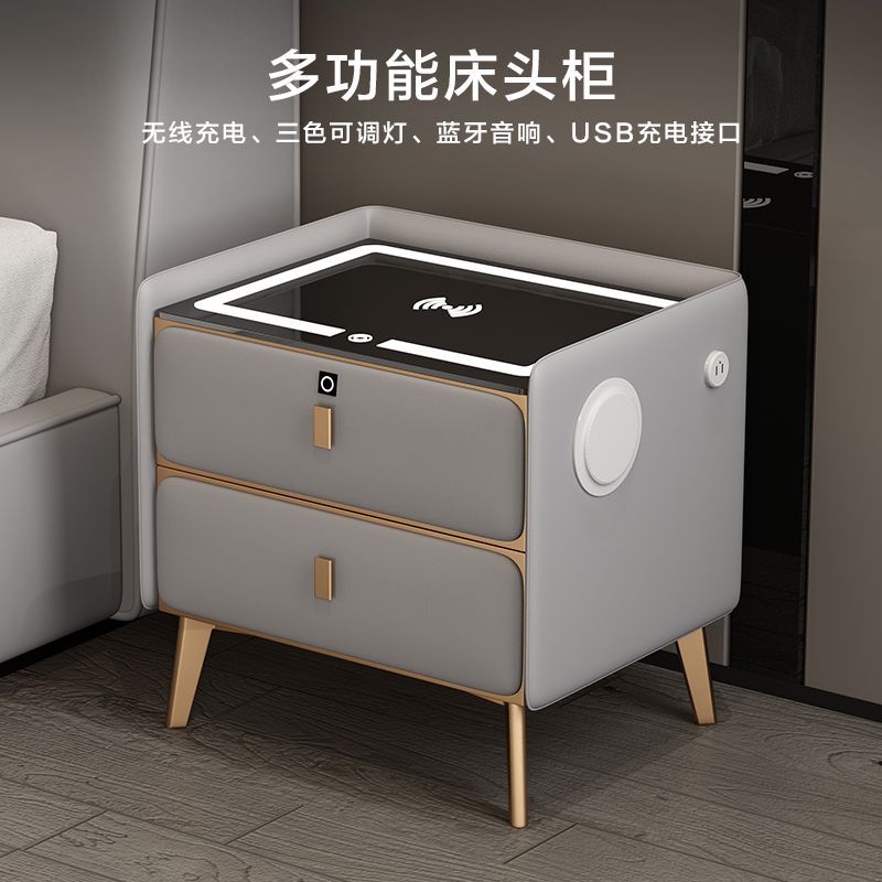 智能实木床头柜现代简约轻奢无线充电带音响指纹锁岩多功能床边柜