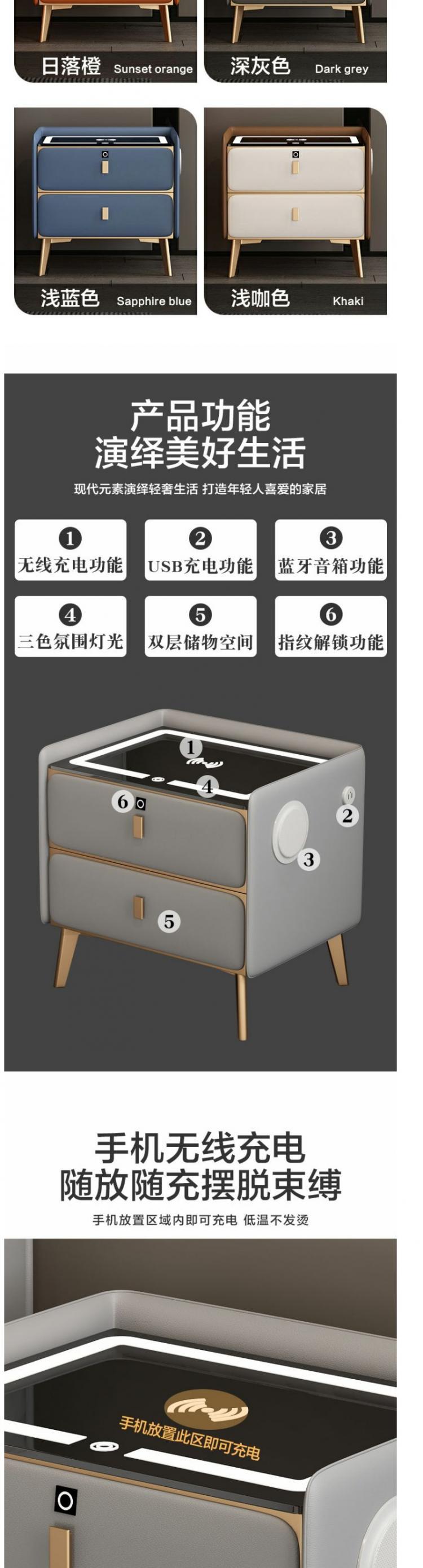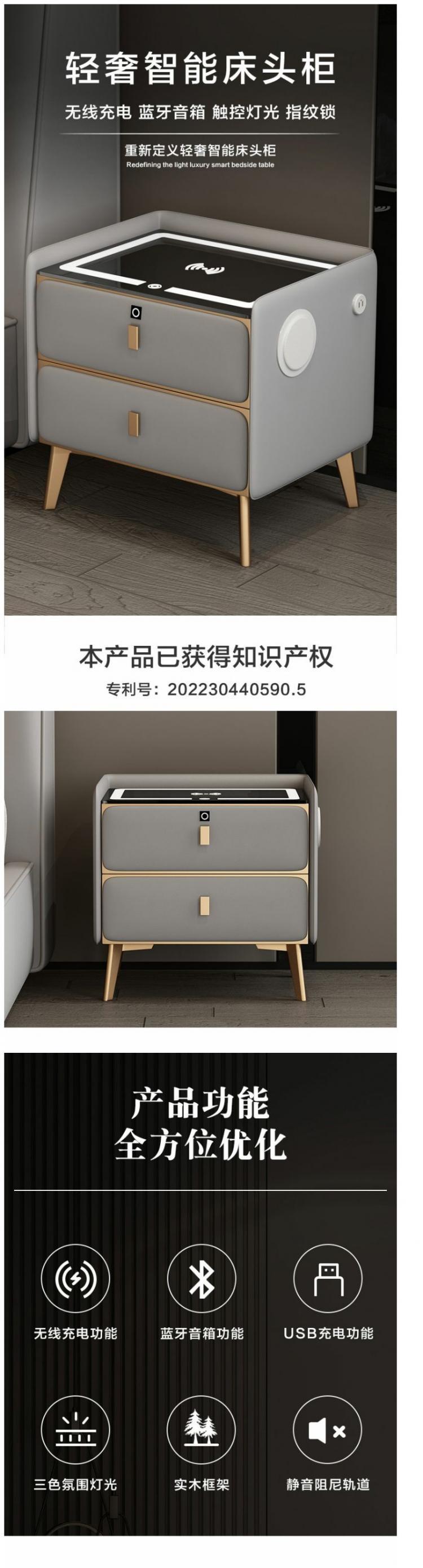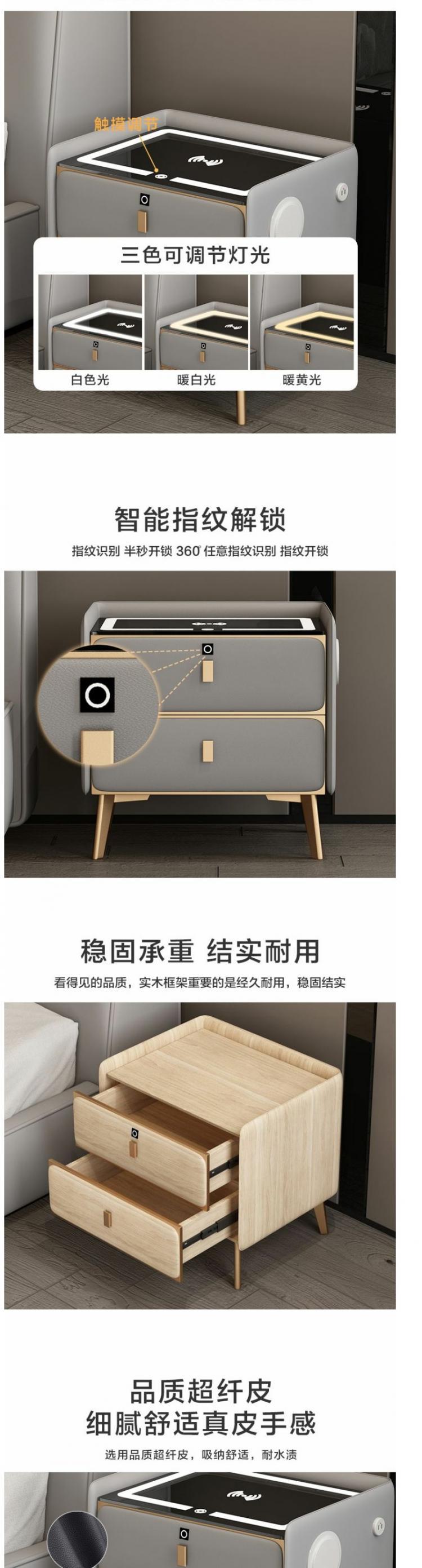 智能实木床头柜现代简约轻奢无线充电带音响指纹锁岩多功能床边柜