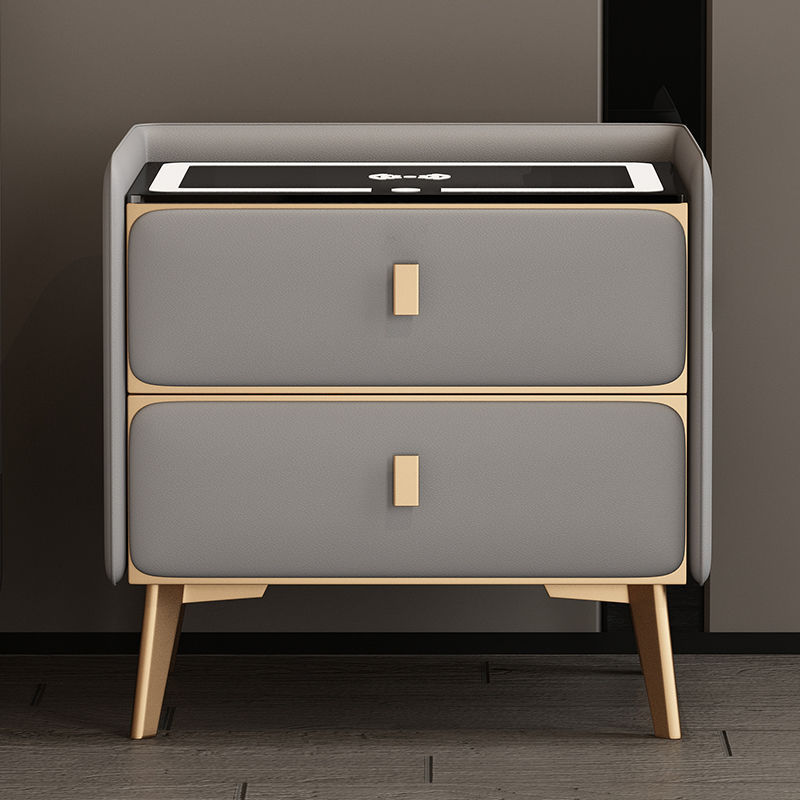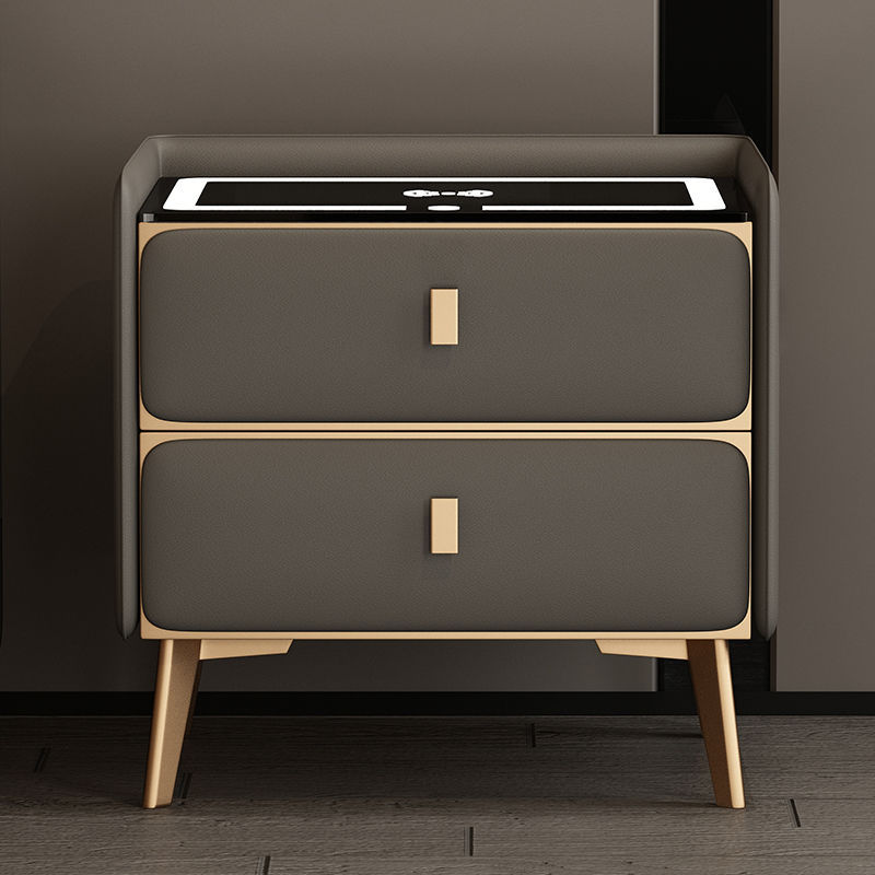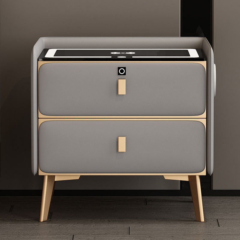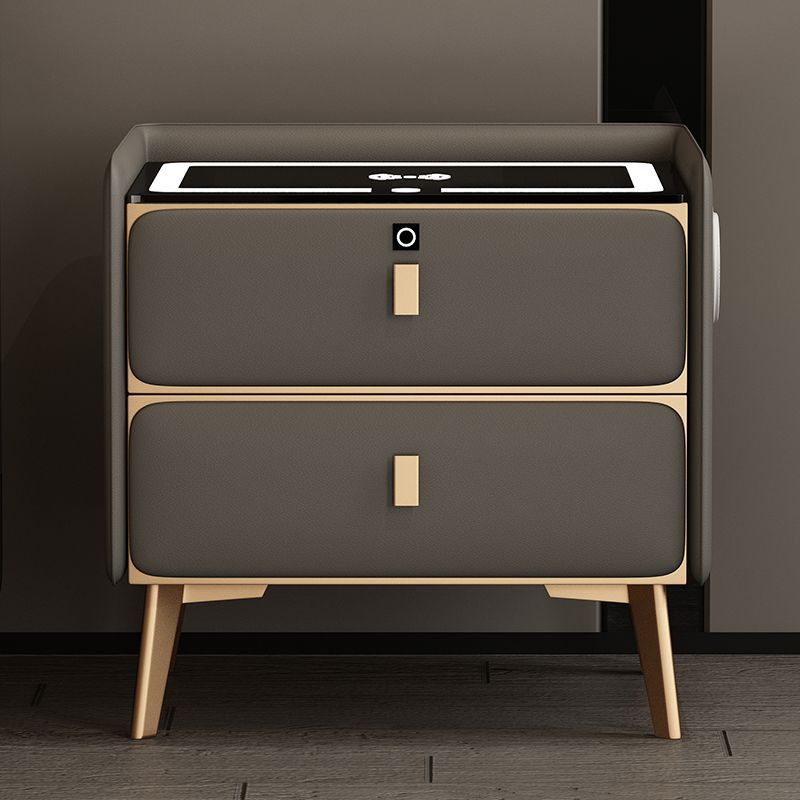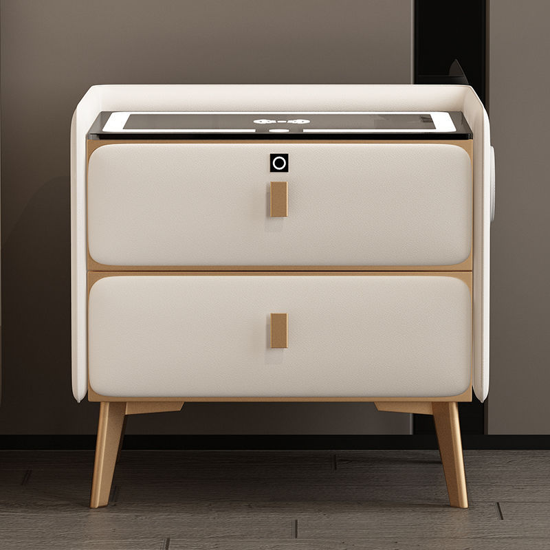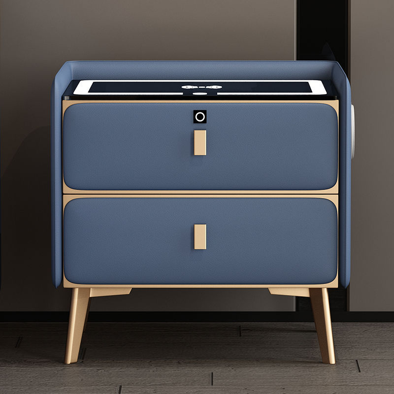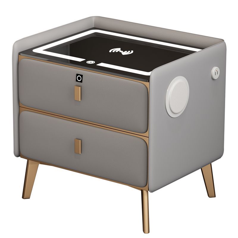 智能实木床头柜现代简约轻奢无线充电带音响指纹锁岩多功能床边柜