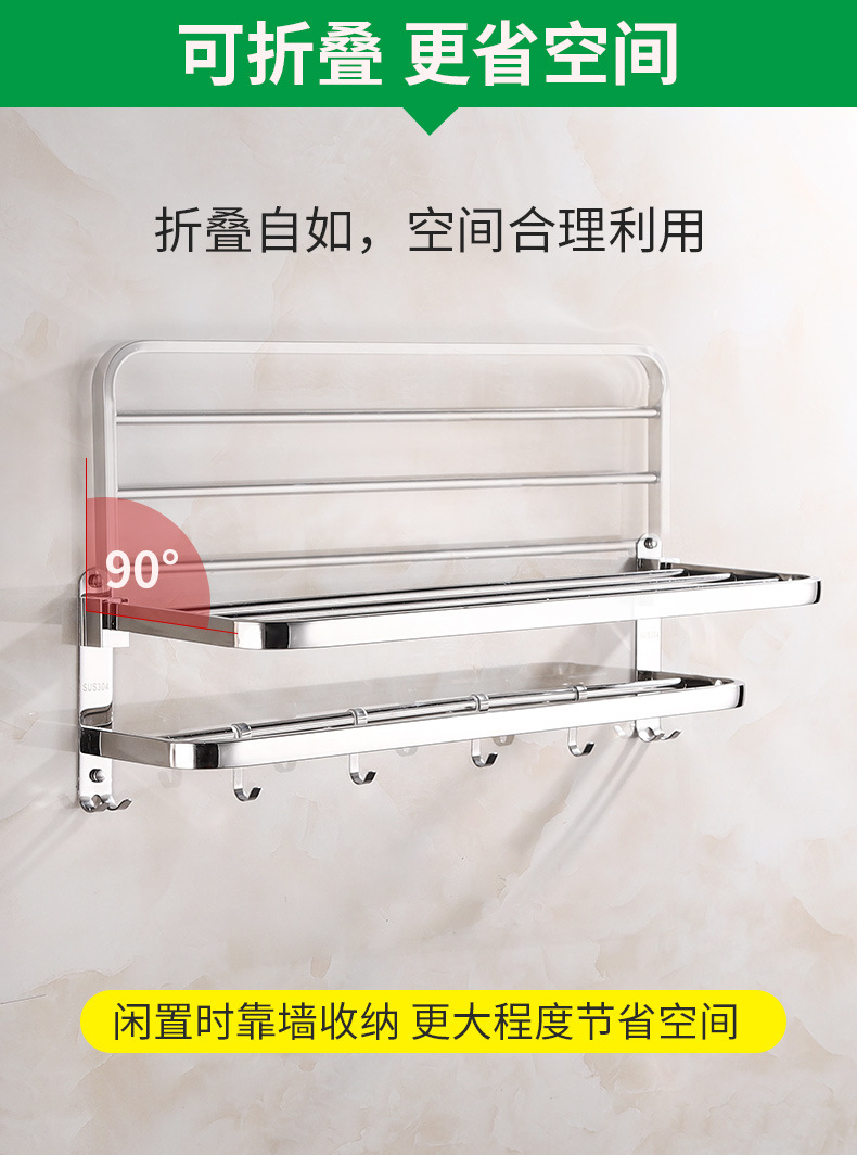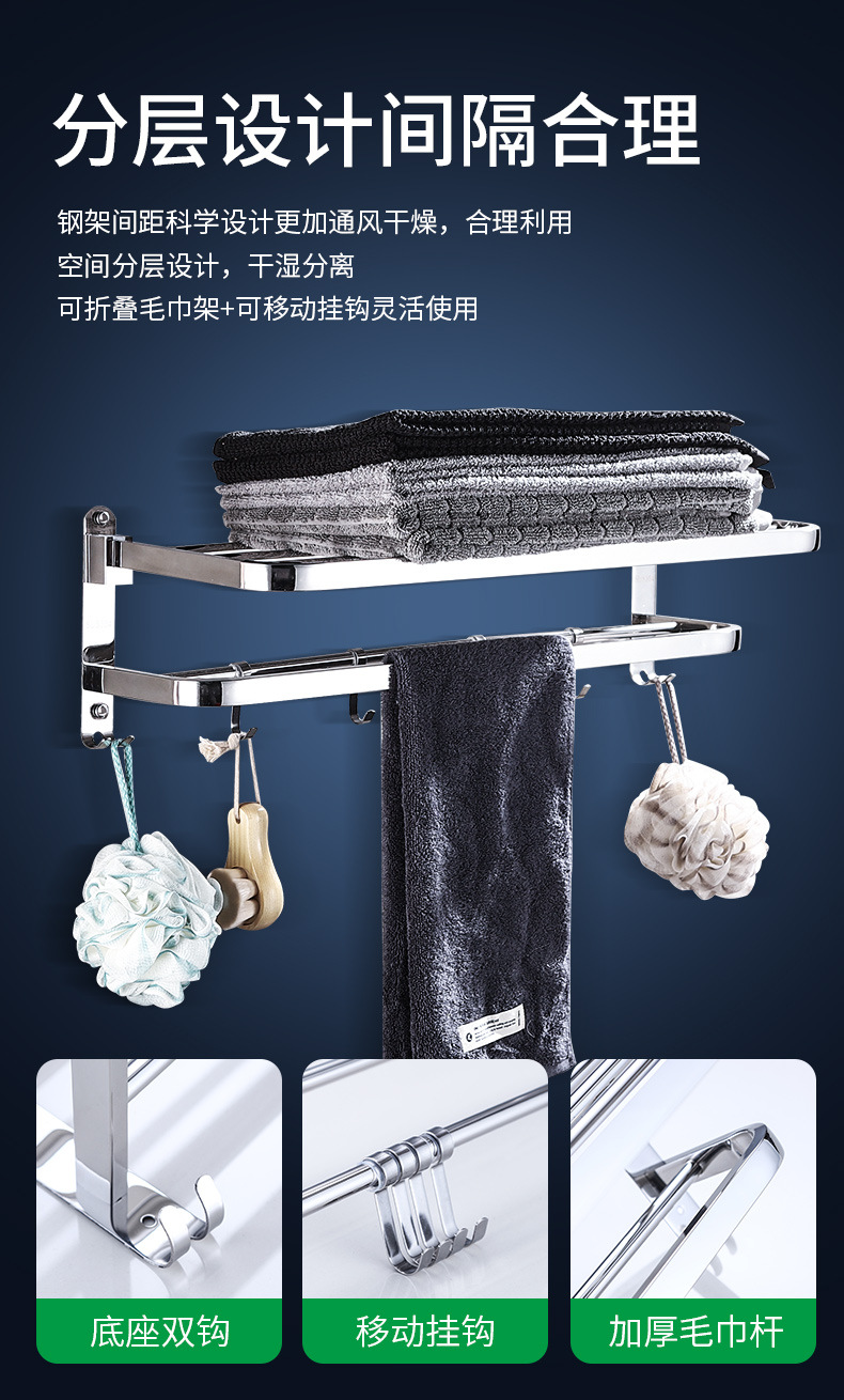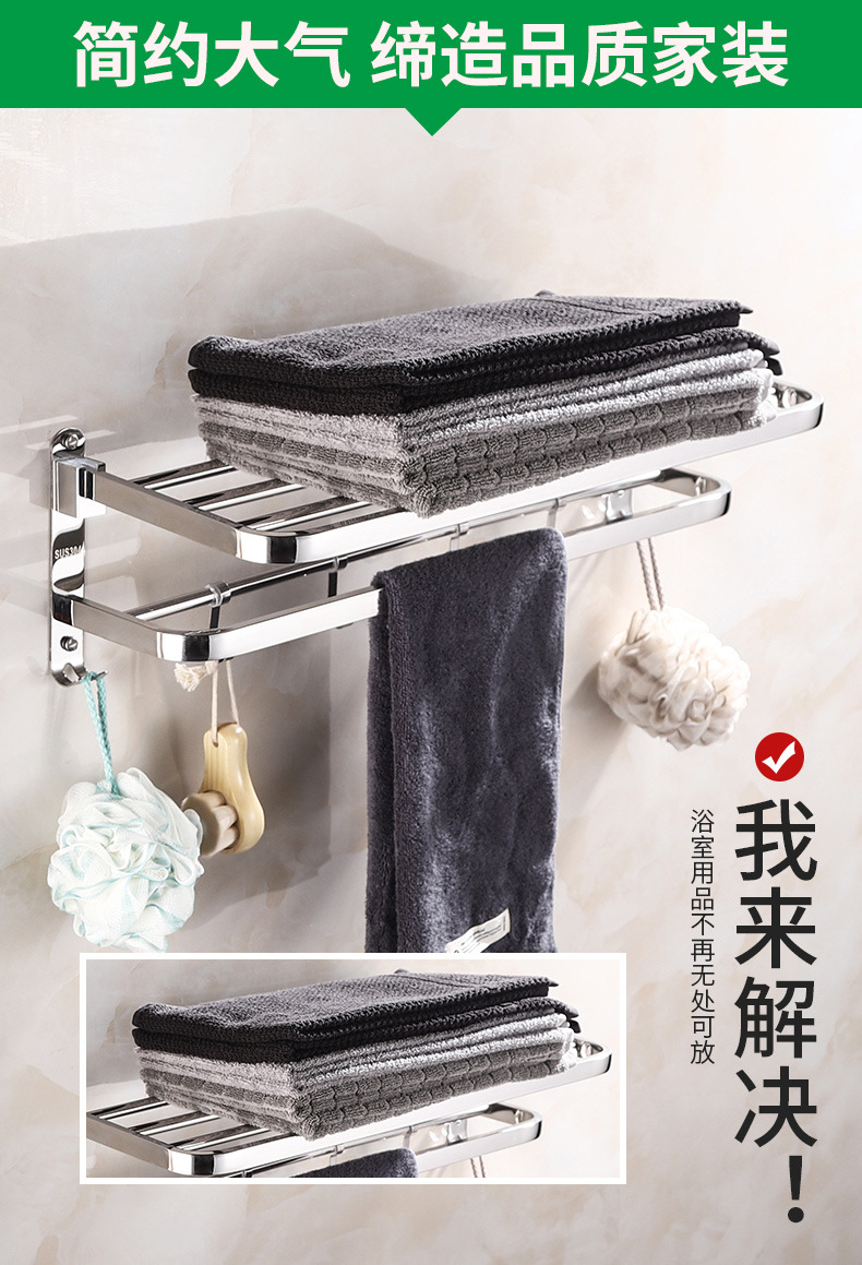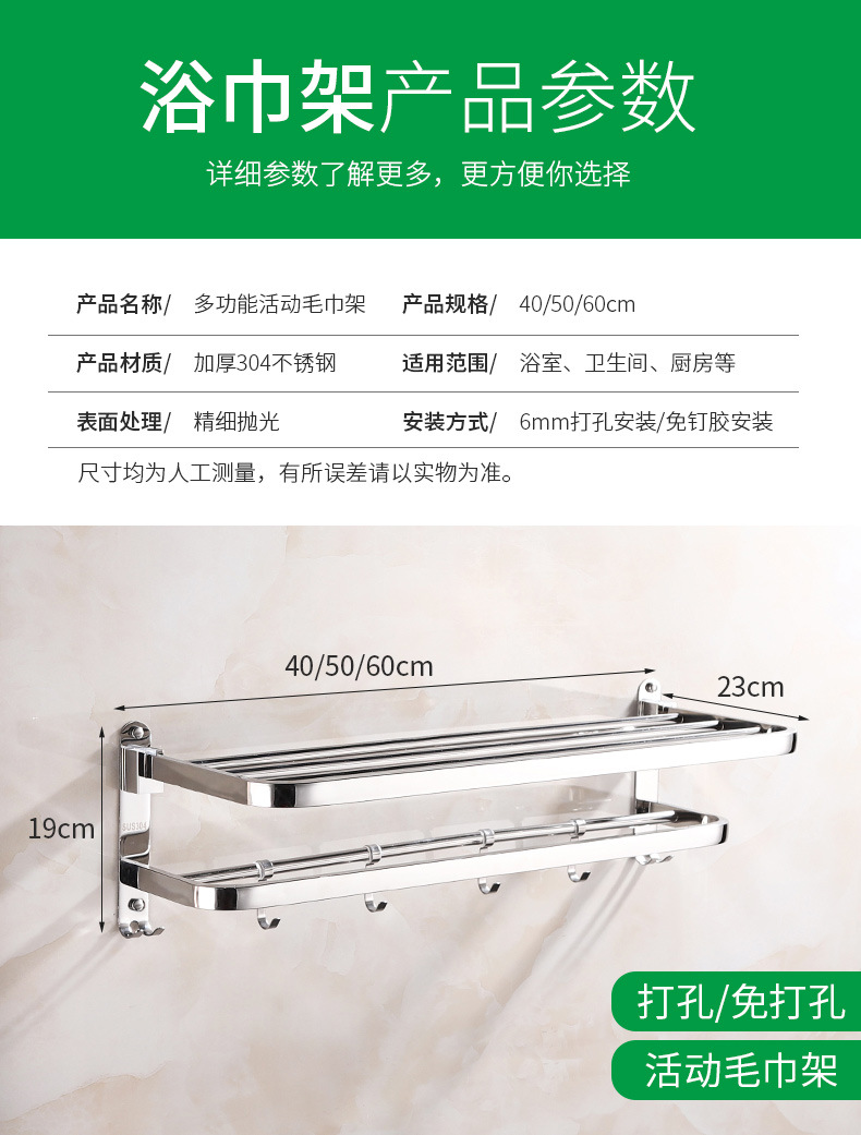 【跨境商品】浴室毛巾架304不锈钢免打孔卫生间浴巾架墙上壁挂式