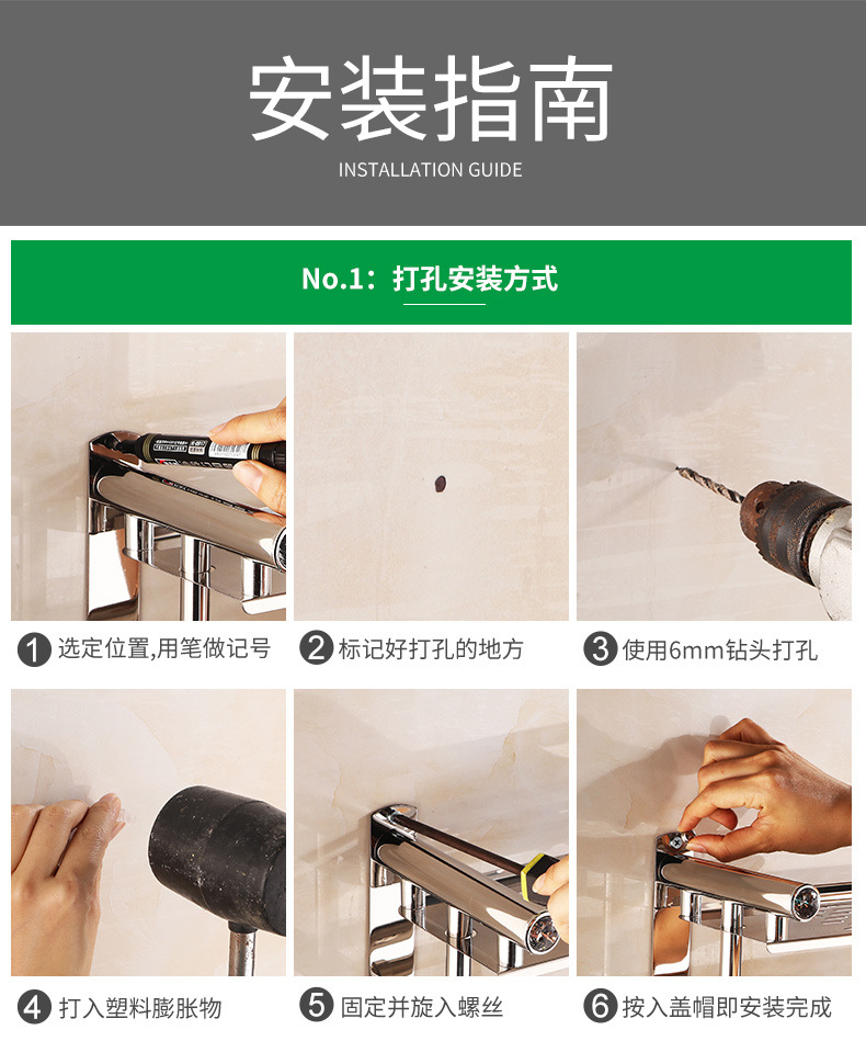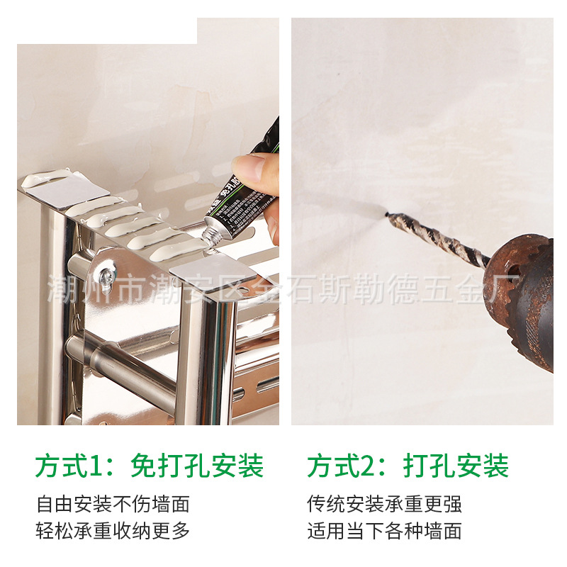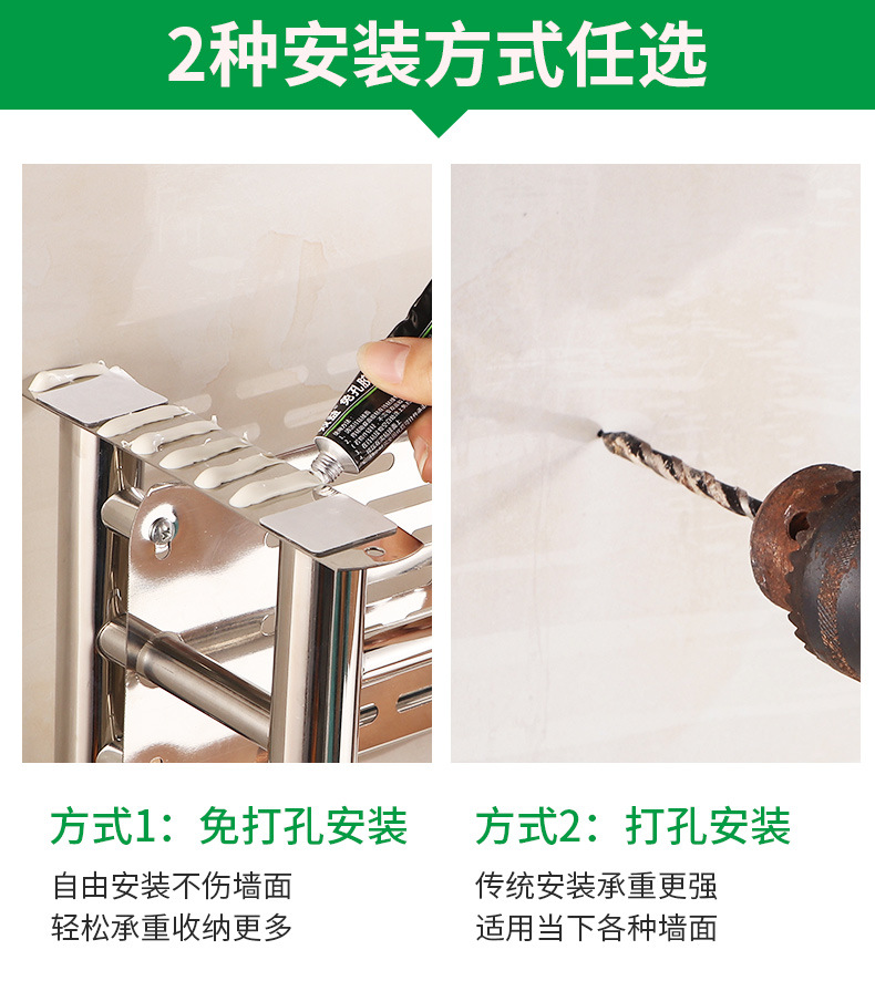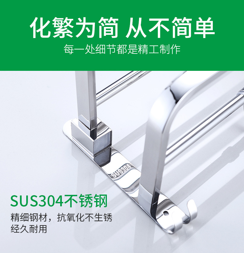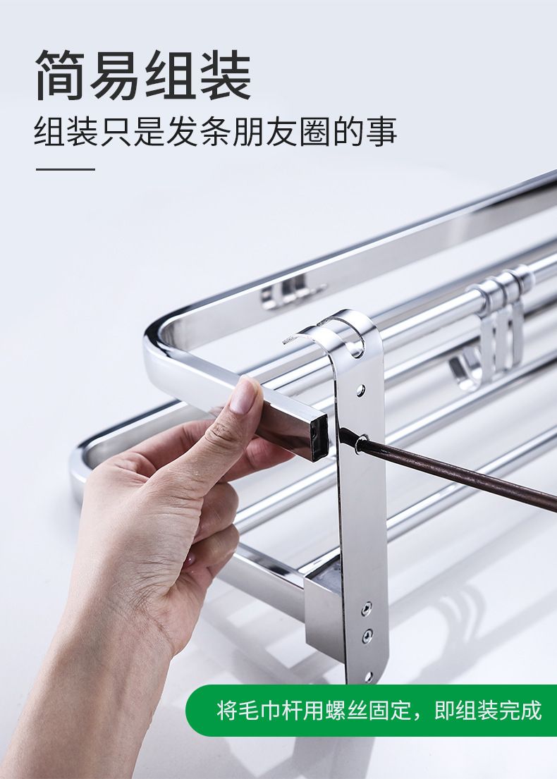 【跨境商品】浴室毛巾架304不锈钢免打孔卫生间浴巾架墙上壁挂式