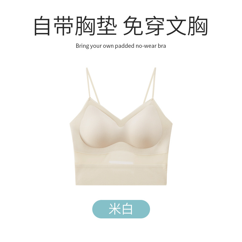 新款吊带背心女舒适透气无痕无钢圈免穿文胸带胸垫可内搭外穿抹胸