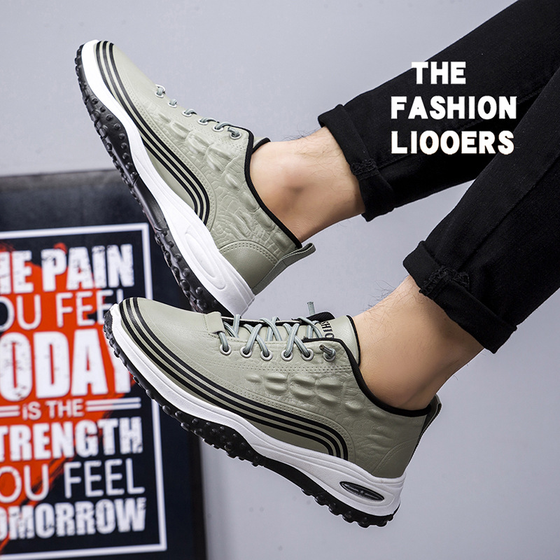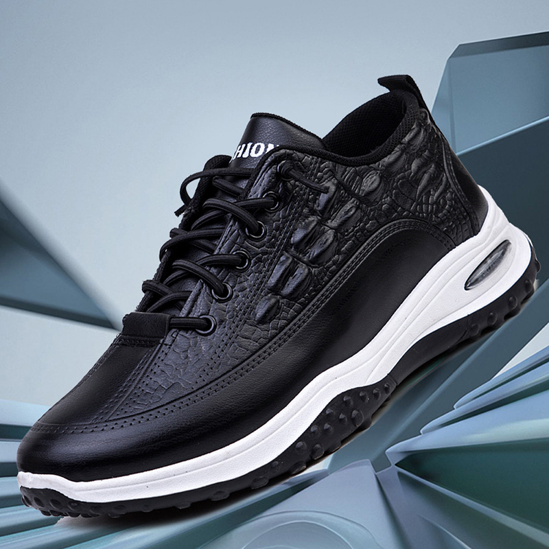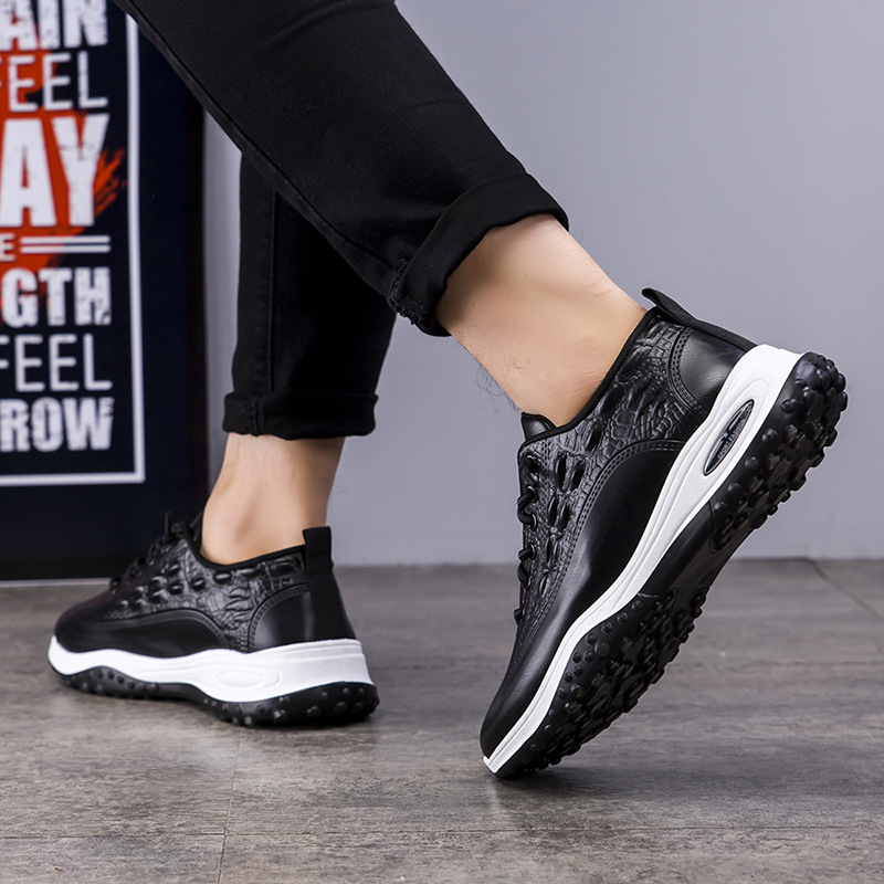2025春季男士新款休闲皮鞋鳄鱼纹PU男单鞋时尚户外皮面加厚运动鞋