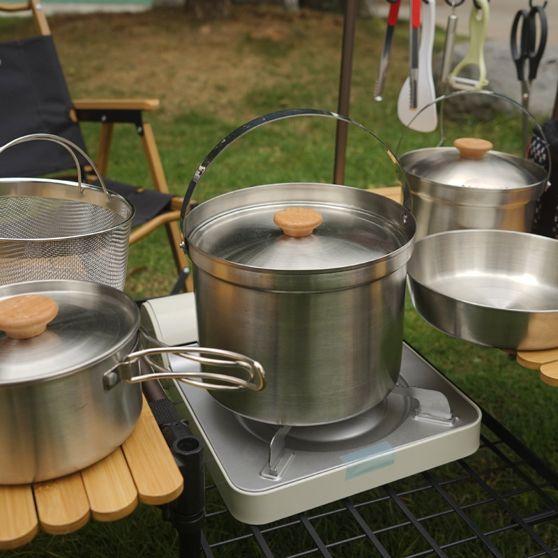 NOBANA户外套锅厨具不锈钢锅具露营野餐煮饭煎锅自驾便携吊锅套装