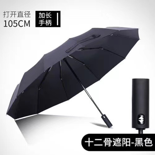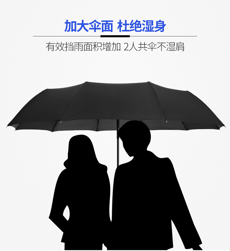 十骨商务加大全自动加厚黑胶防晒三折叠太阳伞广告伞印logo礼品伞