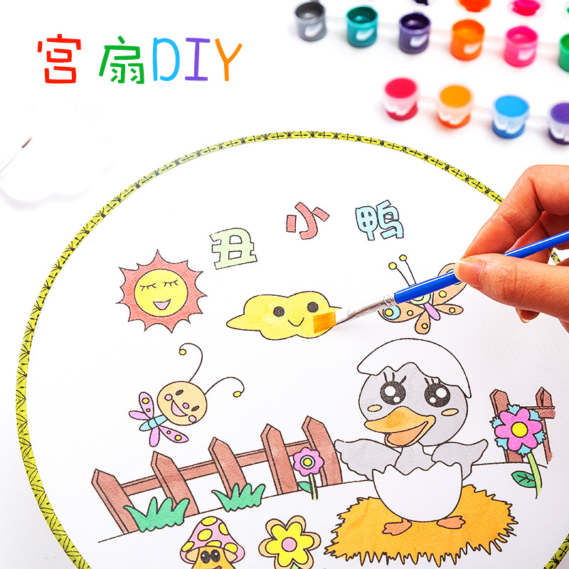 空白扇子儿童绘画diy扇空白团扇宫扇圆扇手绘纸扇小折扇绘画扇