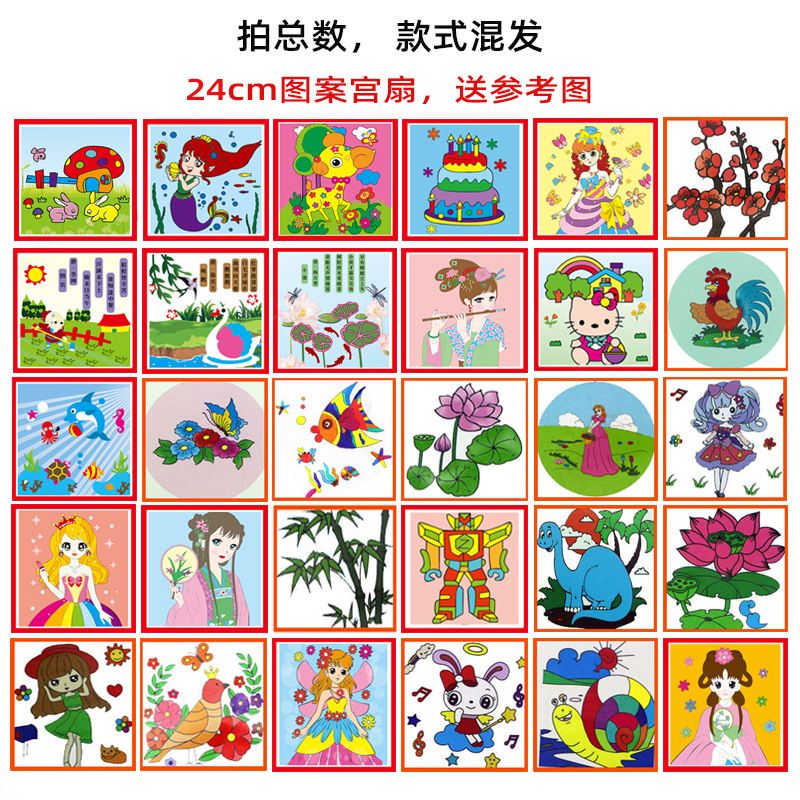 儿童涂鸦彩绘扇子空白圆扇幼儿园diy绘画宫扇 卡通图案填色团扇