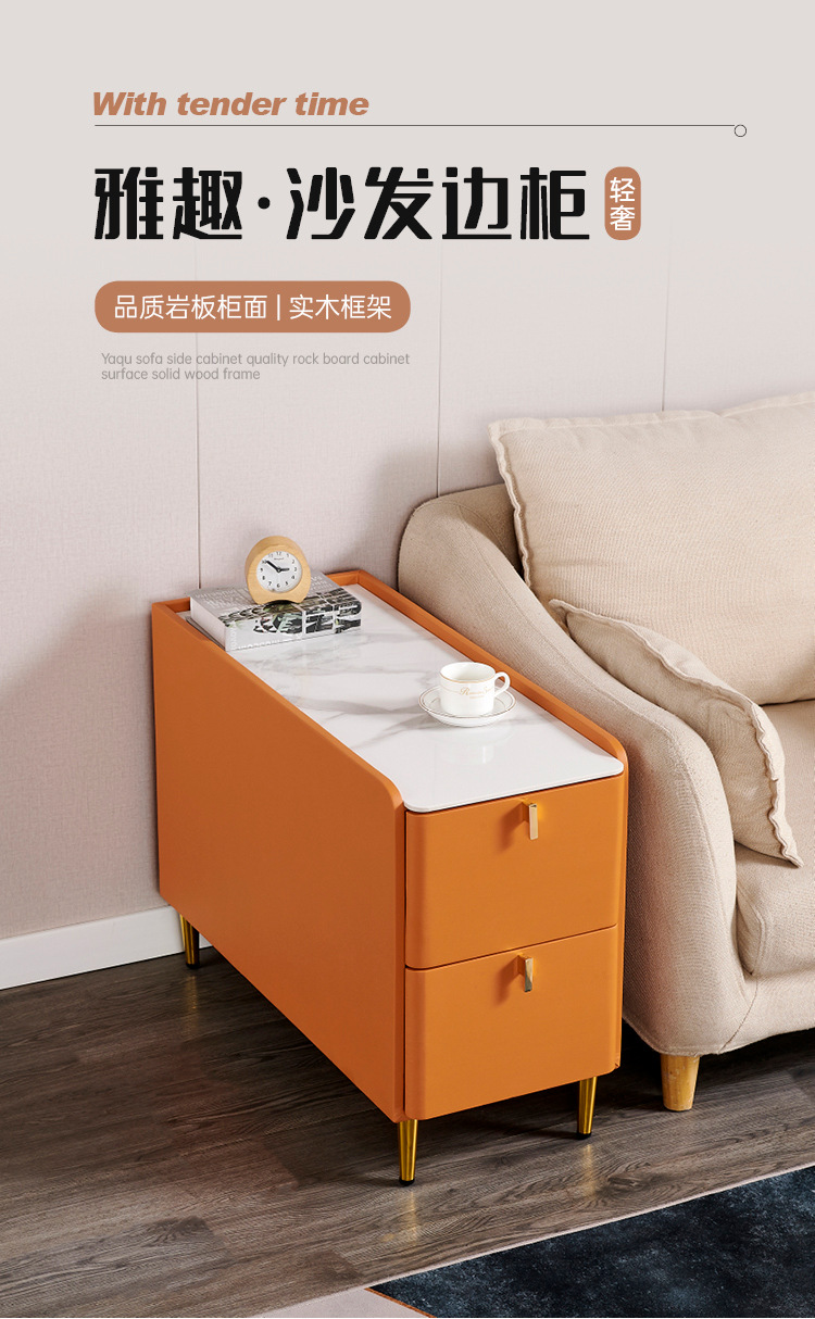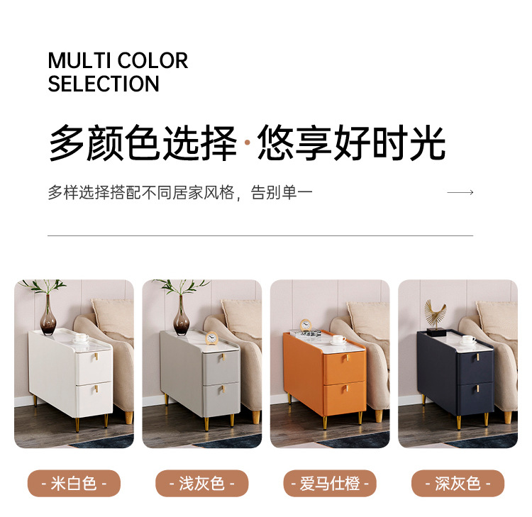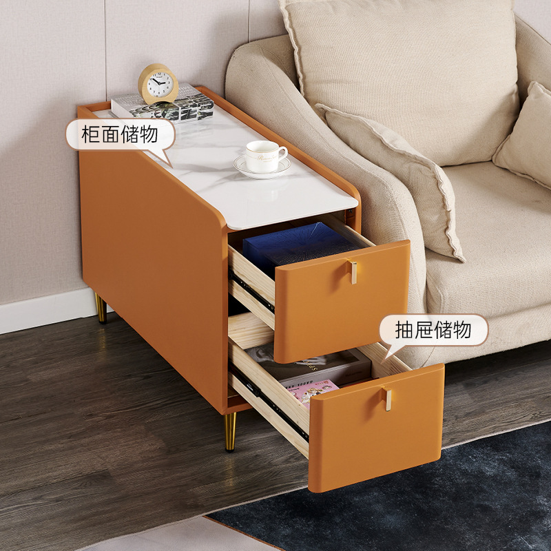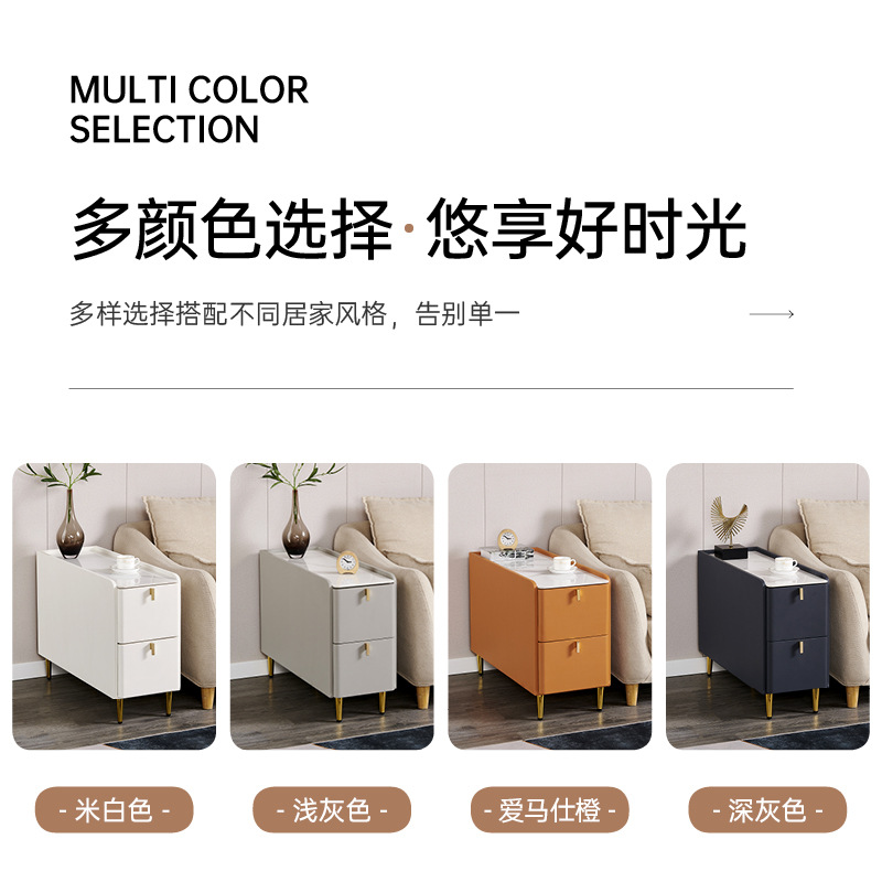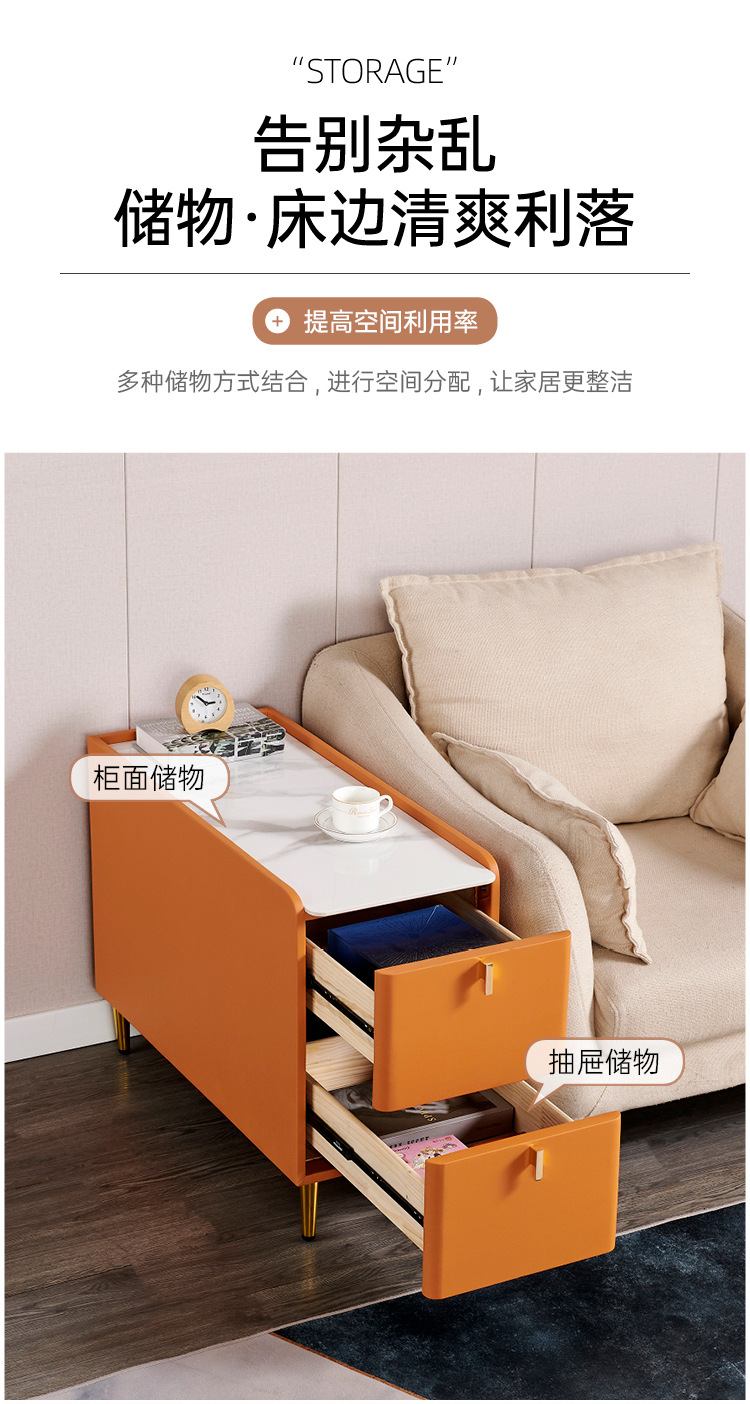 轻奢沙发边几小型超窄极简约现代岩板实木客厅智能全实木沙发边柜