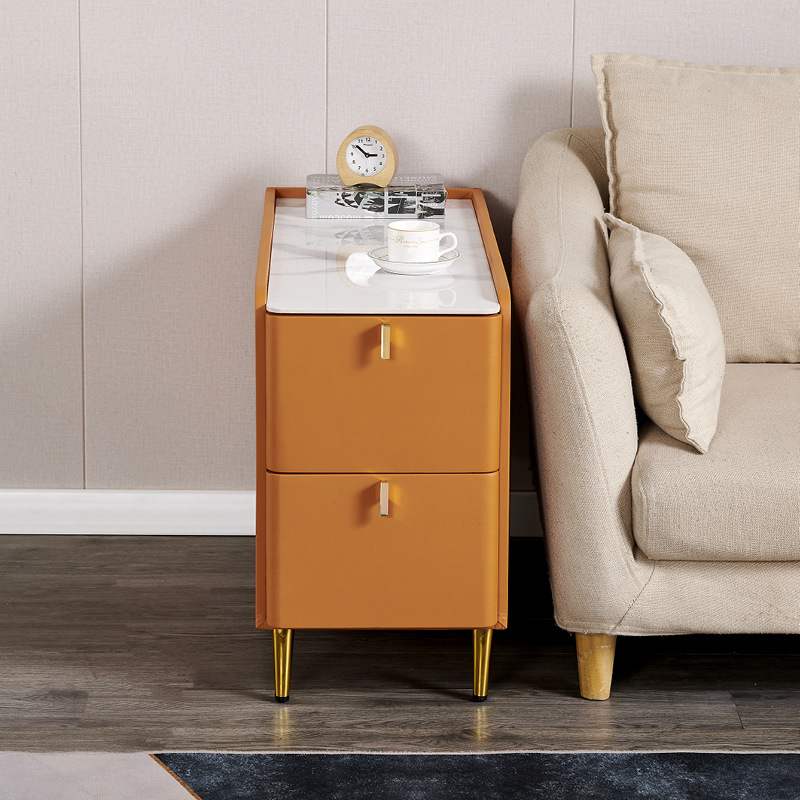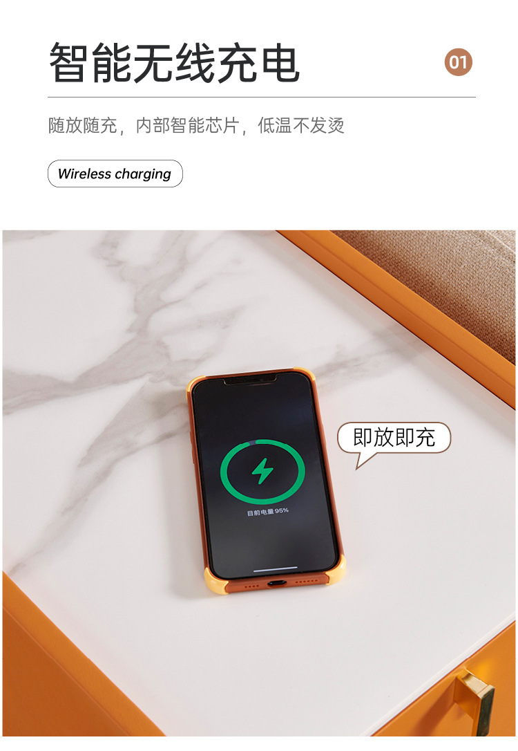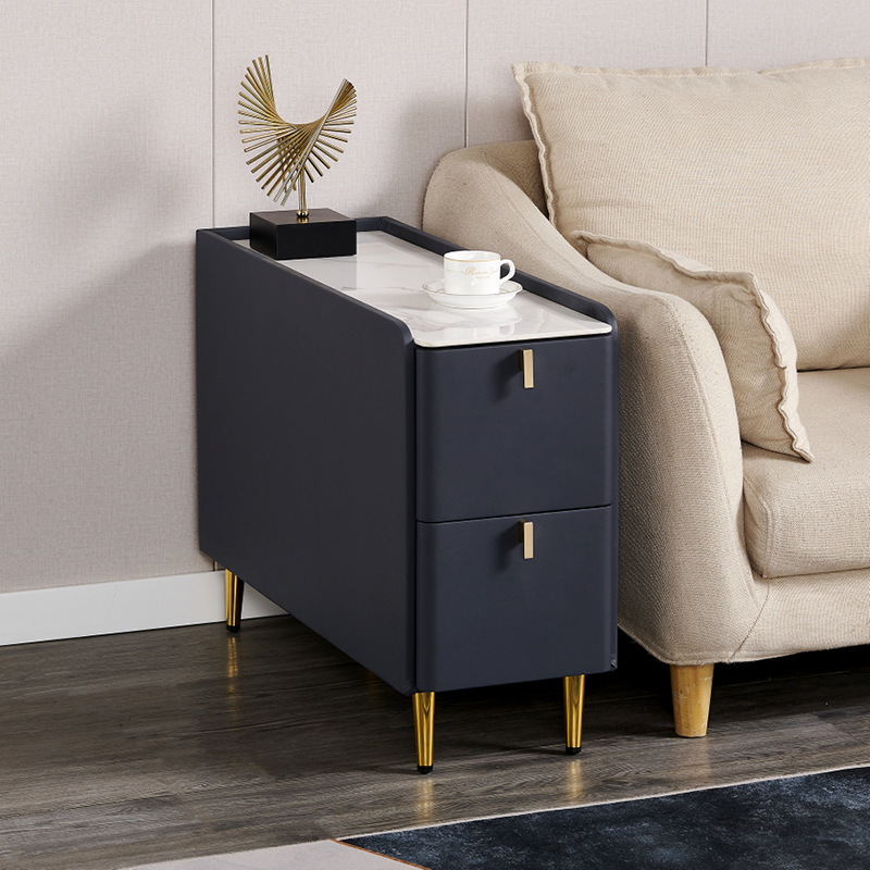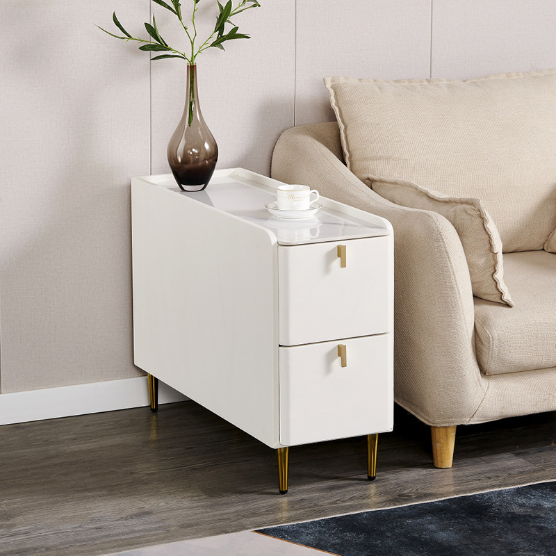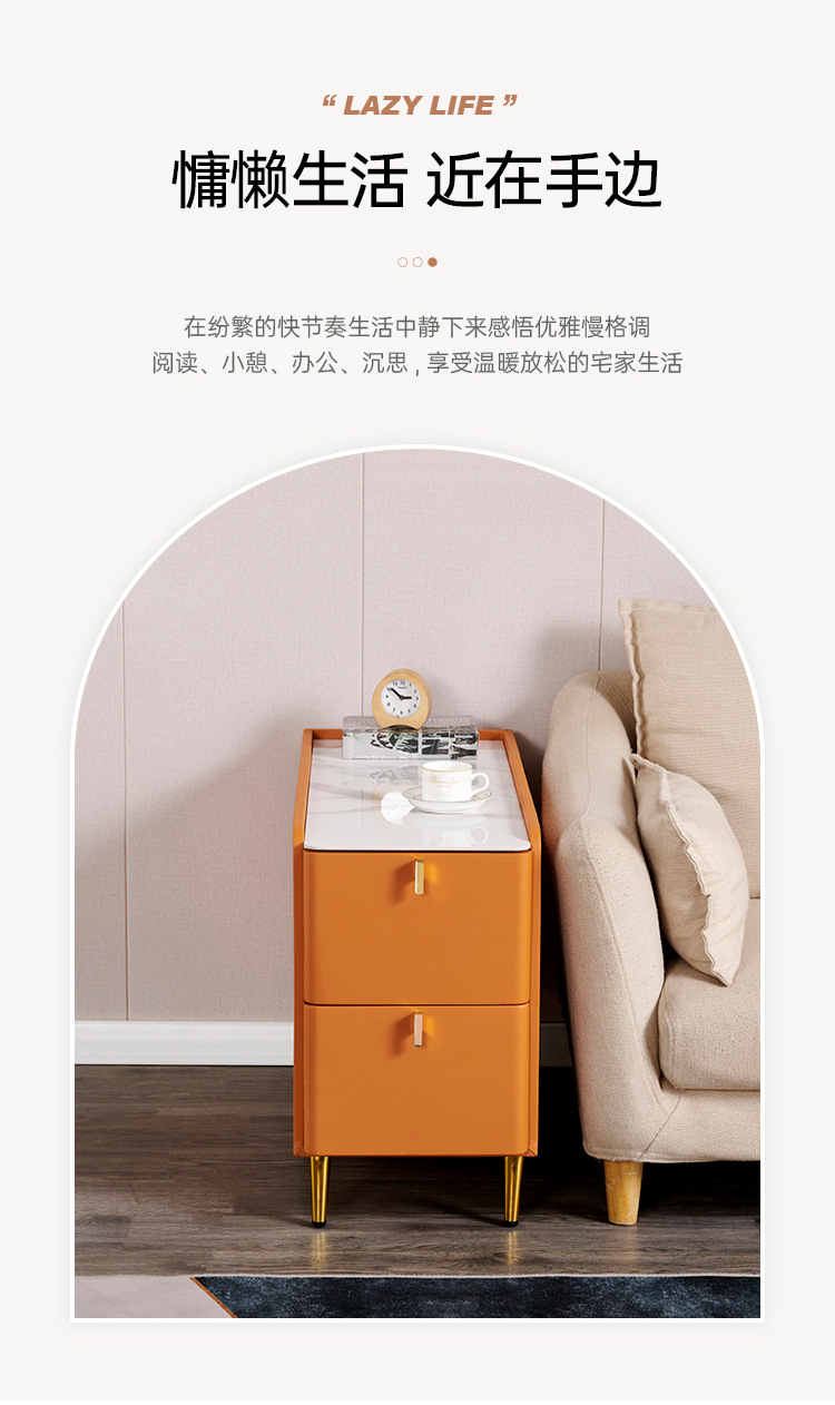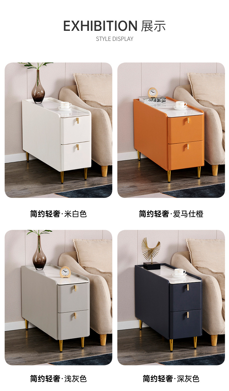 轻奢沙发边几小型超窄极简约现代岩板实木客厅智能全实木沙发边柜