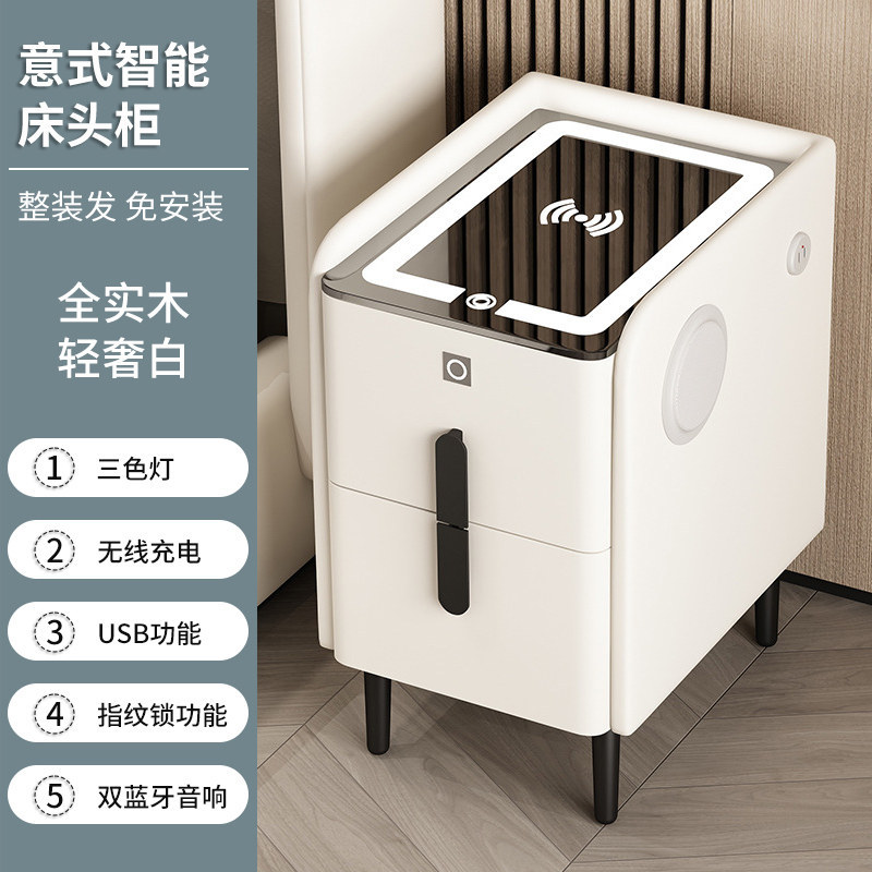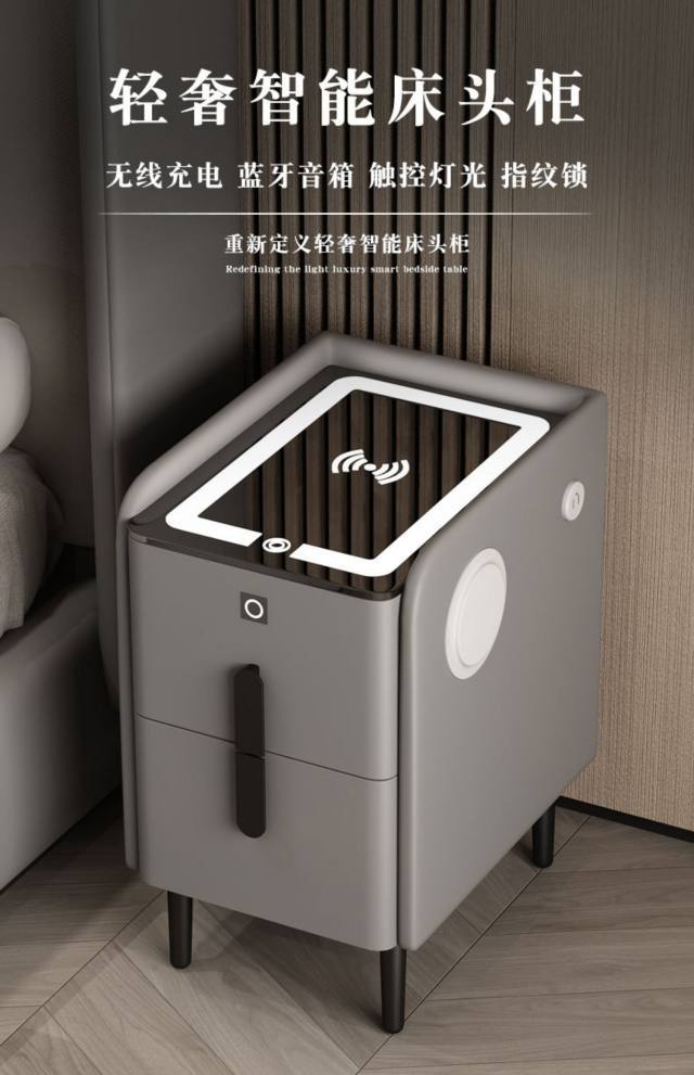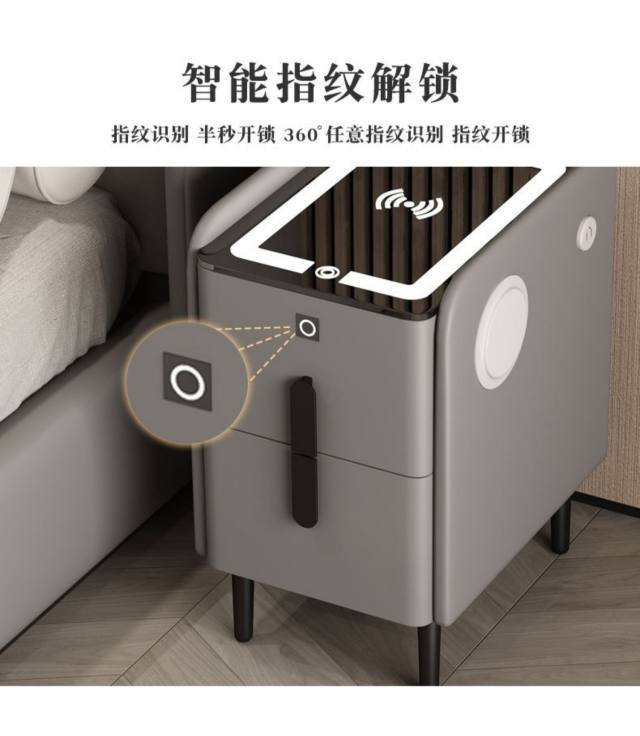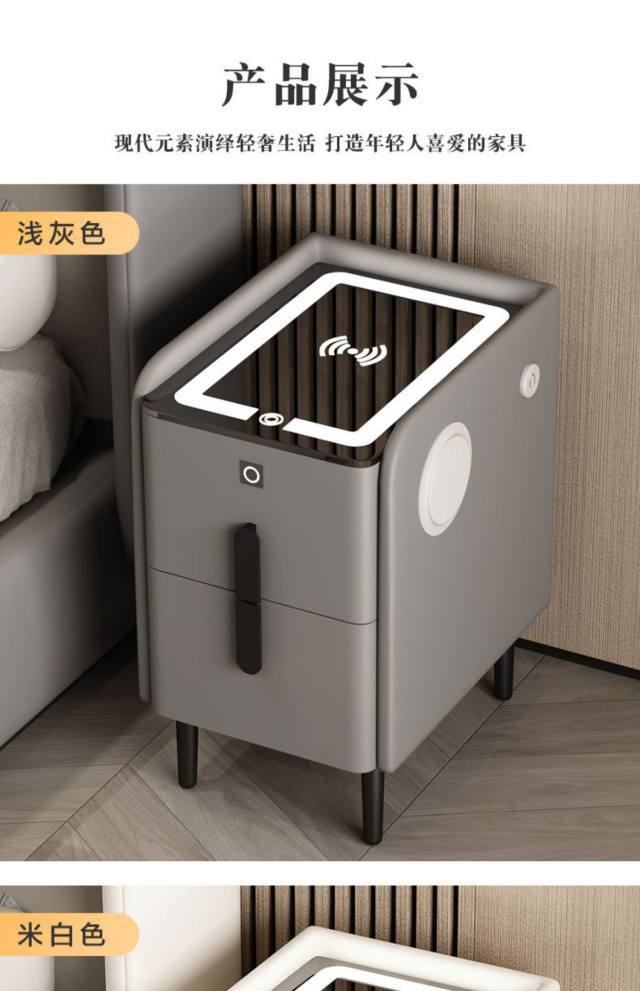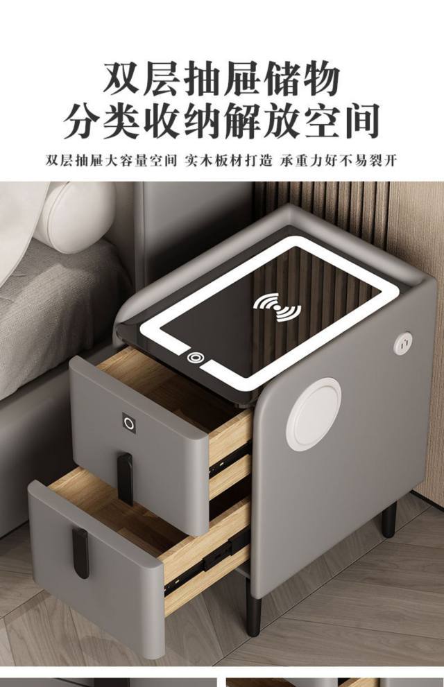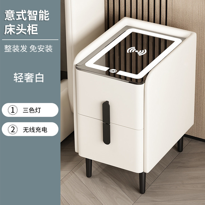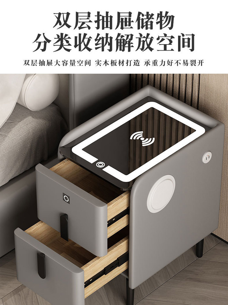 智能床头柜小型超窄皮质简约现代轻奢无线充电卧室收纳实木边柜子