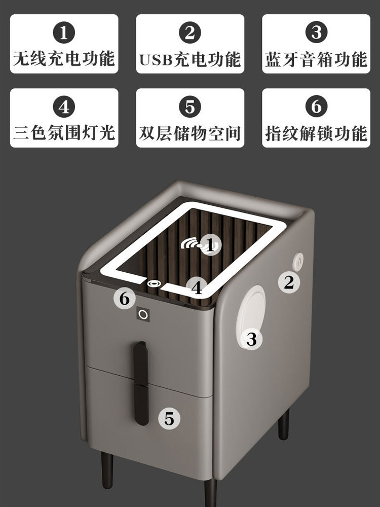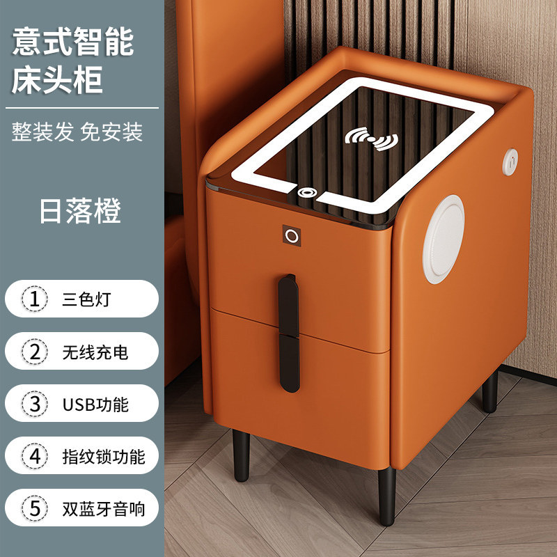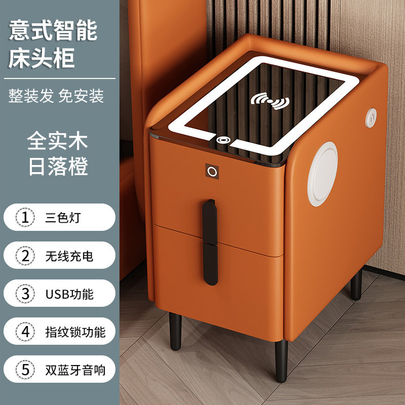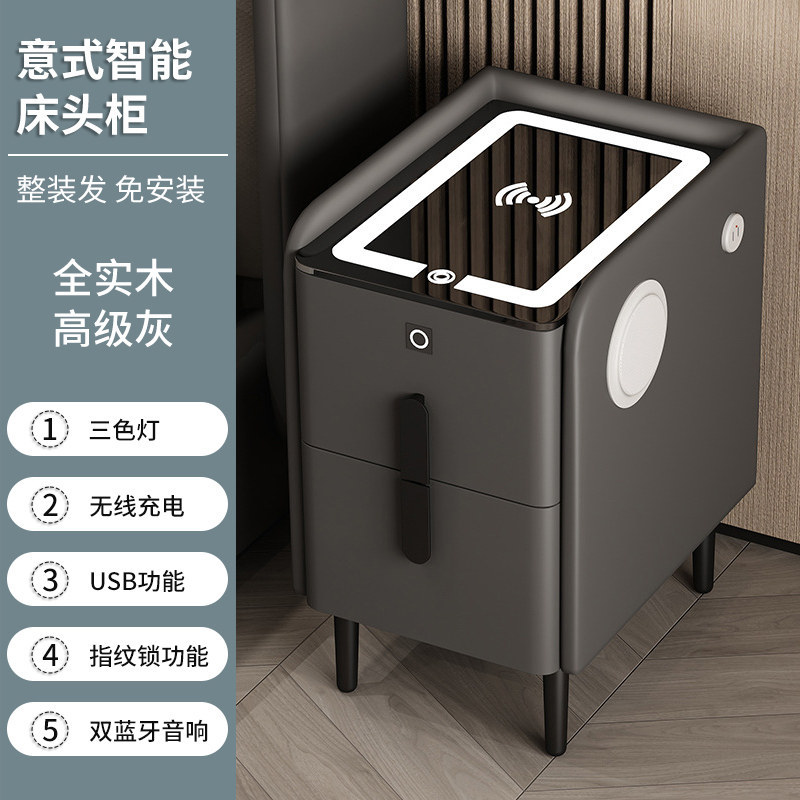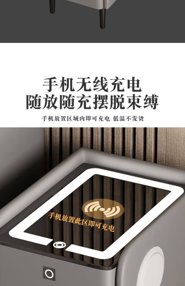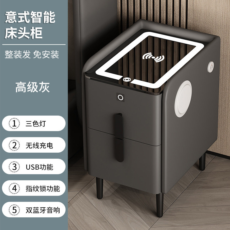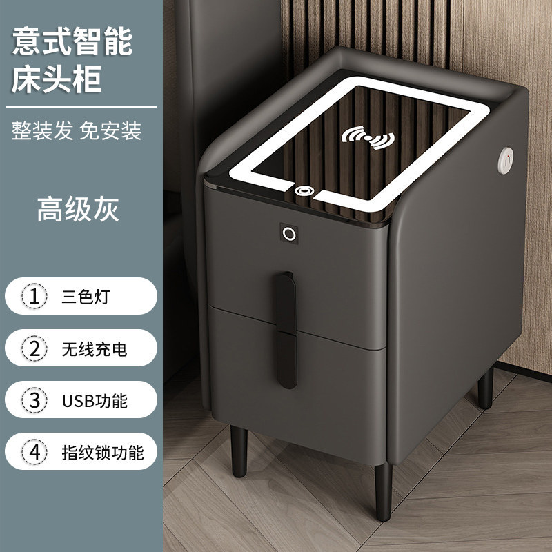 智能床头柜小型超窄皮质简约现代轻奢无线充电卧室收纳实木边柜子