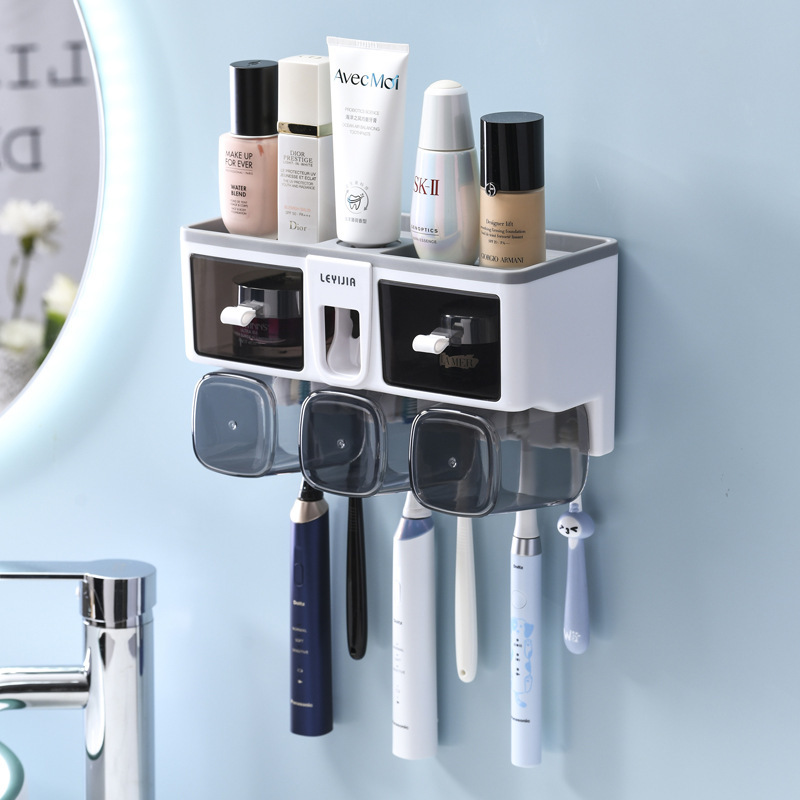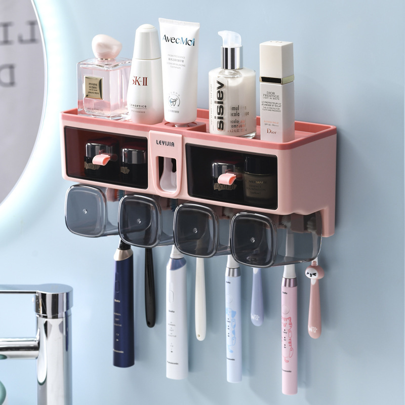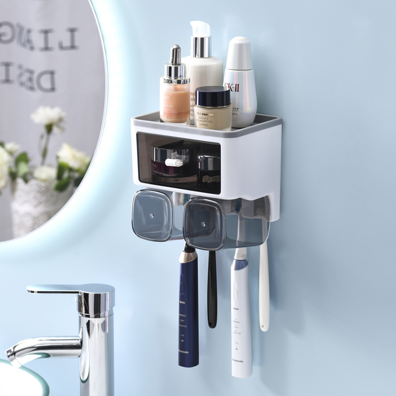 透明壁挂免打孔洗漱收纳抽屉牙刷置物架