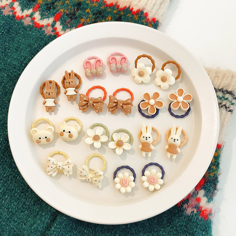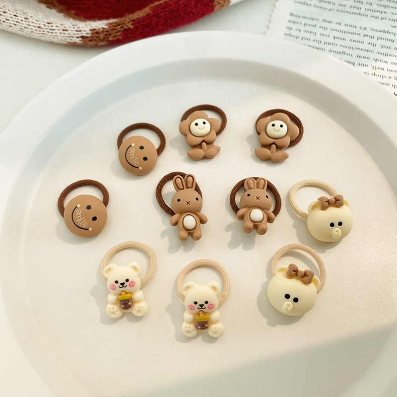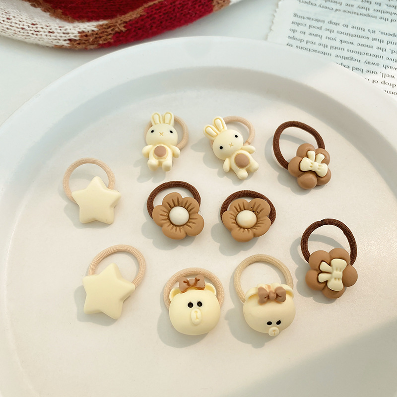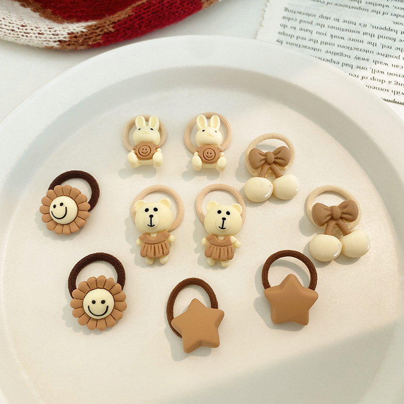 奶咖色儿童可爱小熊皮筋花朵发圈婴儿不伤发弹性好女童宝宝头绳女