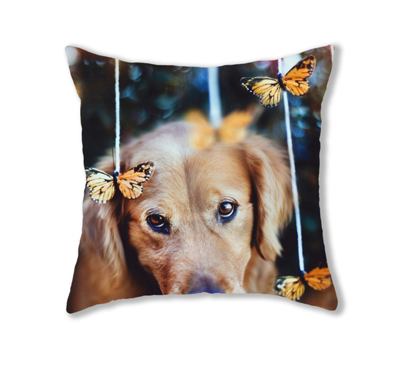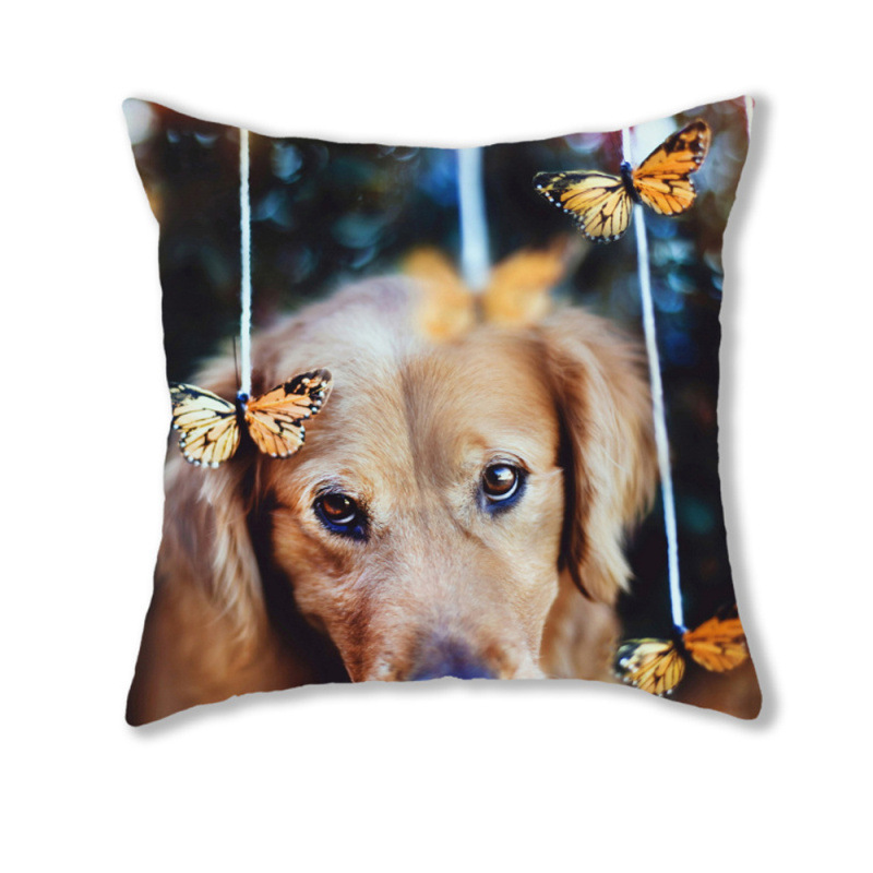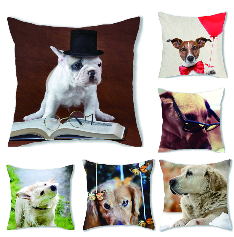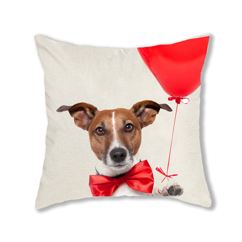 高清小狗数码印花抱枕套跨境亚麻餐厅座椅活动装饰居家沙发靠垫套