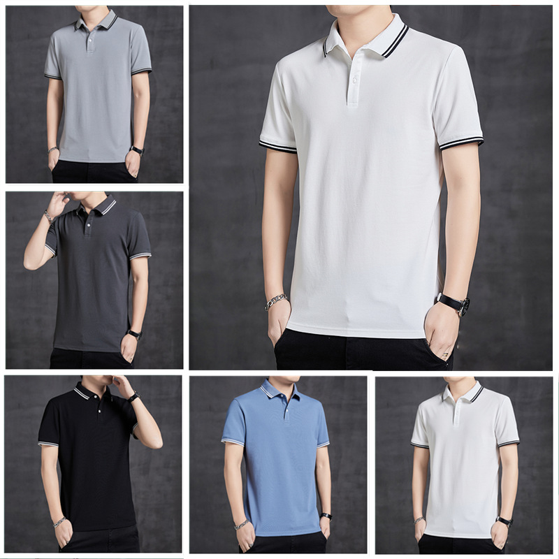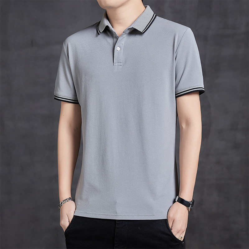 POLO衫男士休闲衬衫领短袖体恤2023春夏新款商务保罗翻领纯色T恤