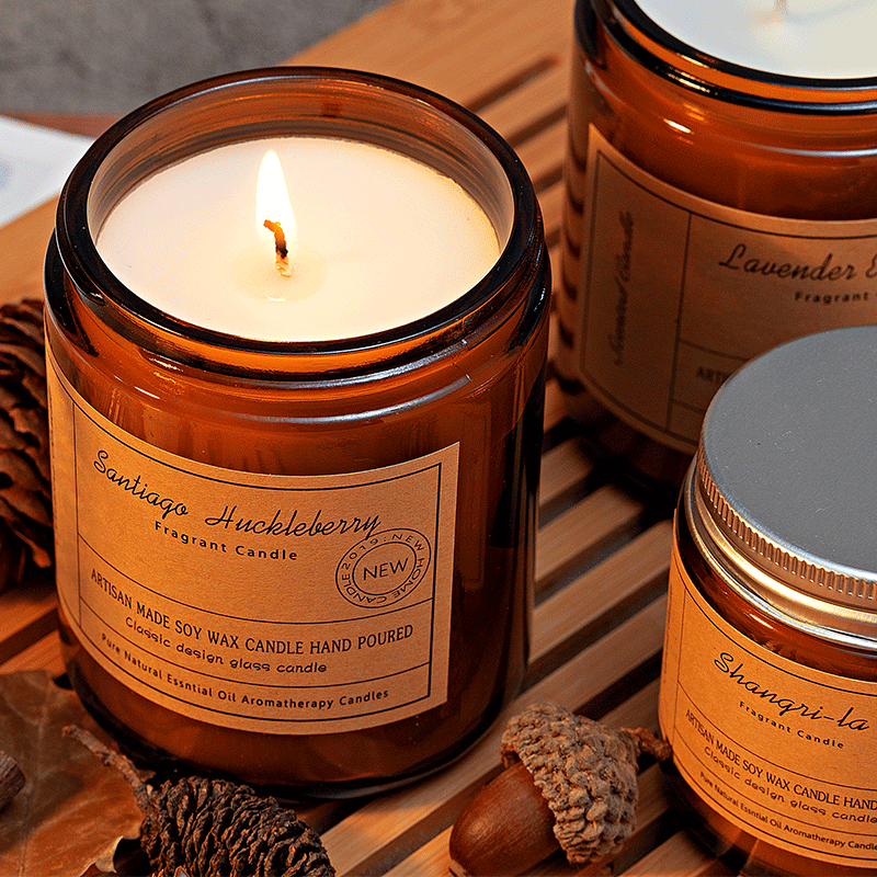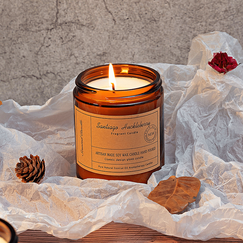 跨境香氛蜡烛批发生日礼物结婚伴手礼 ins茶色玻璃杯手工