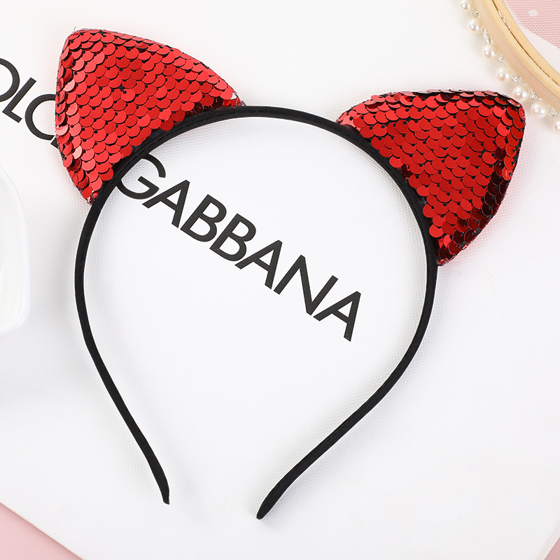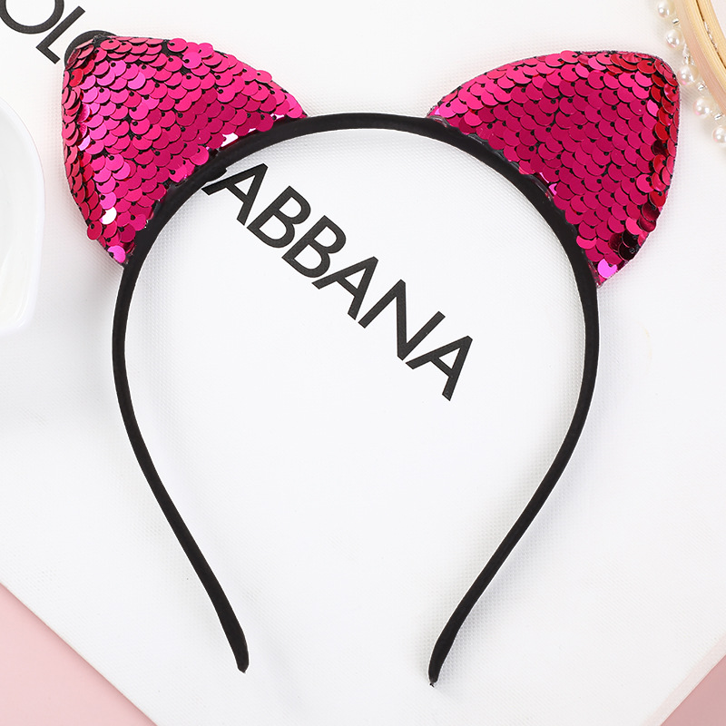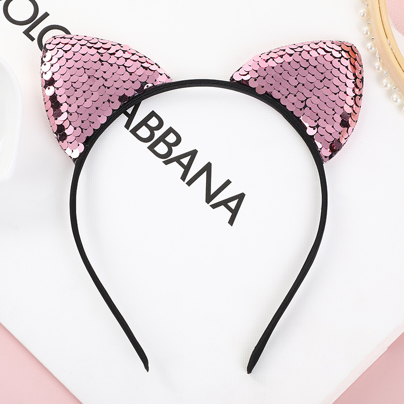 跨境现货头饰亮片发箍亚马逊热销儿童猫耳朵头箍圣诞派对发饰发箍