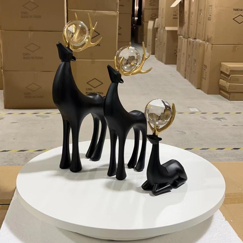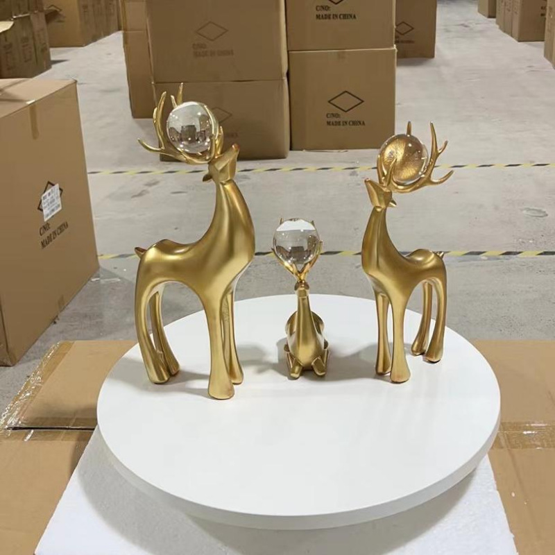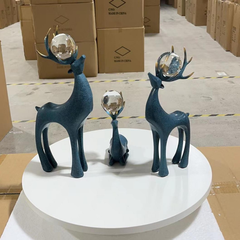 树脂工艺品欧式风格三只招宝鹿摆件创意客厅电视柜家居装饰品摆设