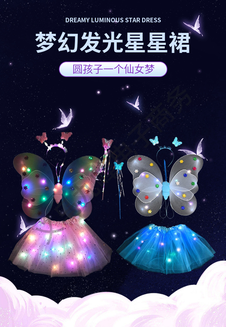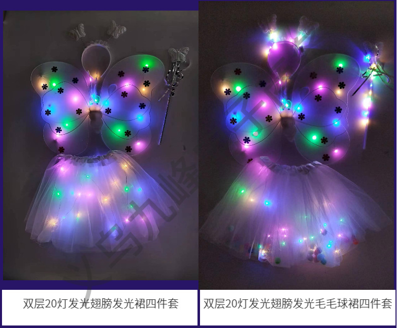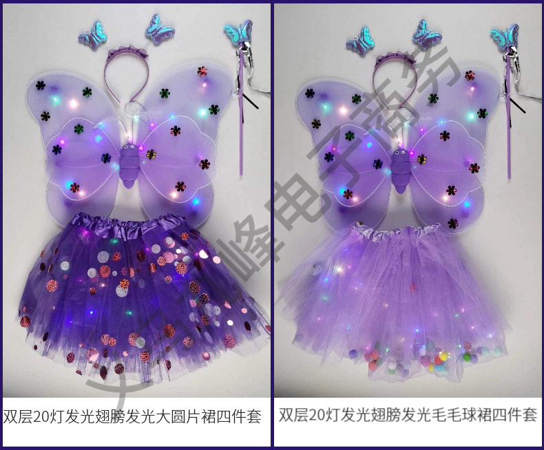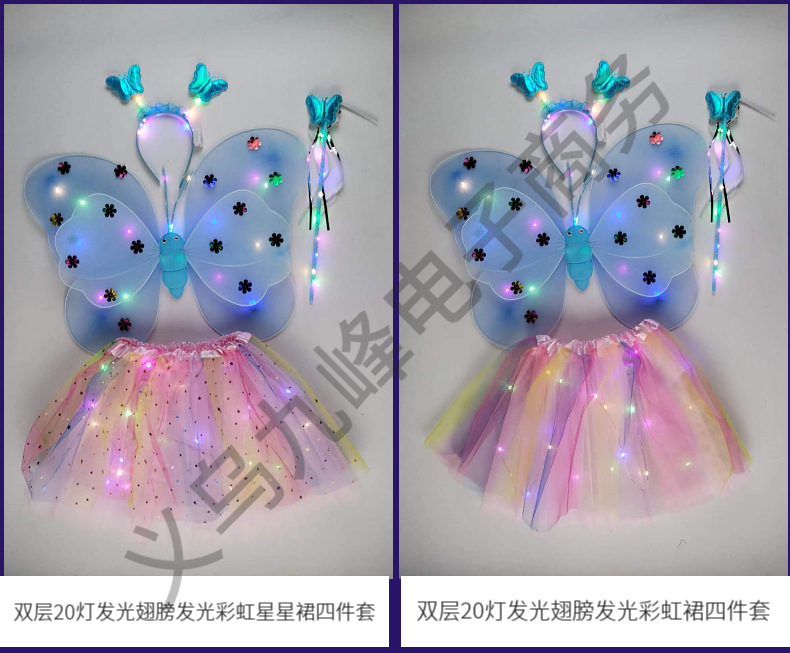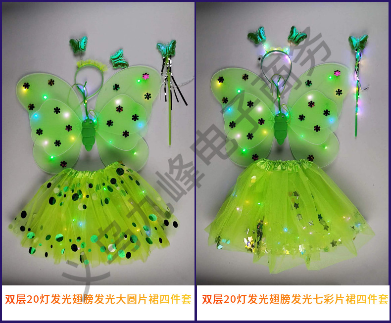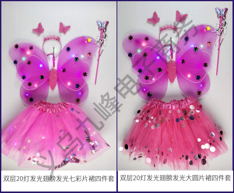 儿童玩具蝴蝶翅膀发光蝴蝶翅膀亮片蝴蝶翅膀双层蝴蝶翅膀发光翅膀