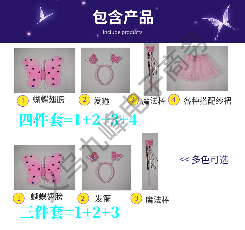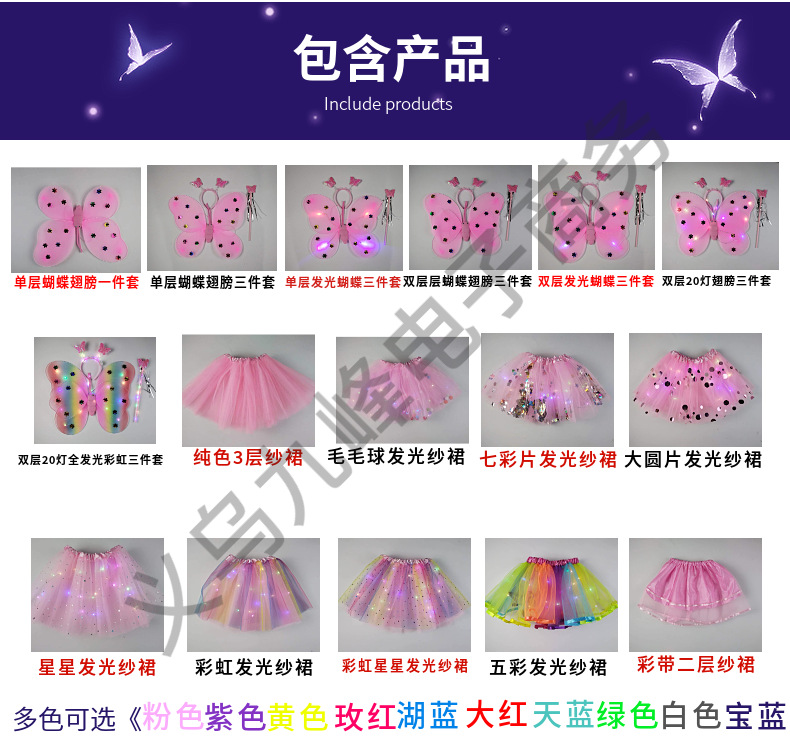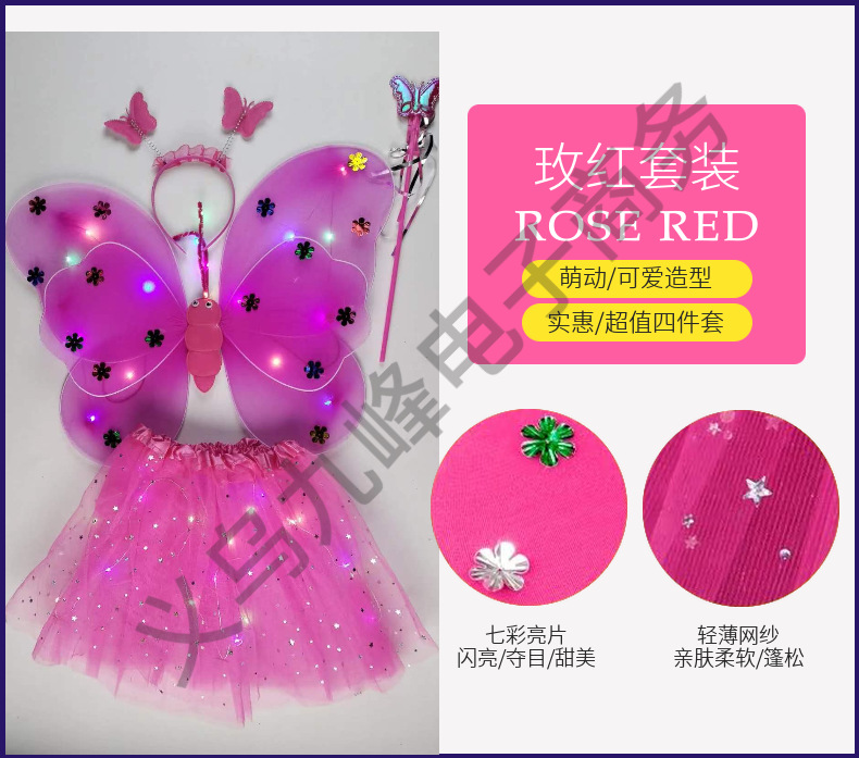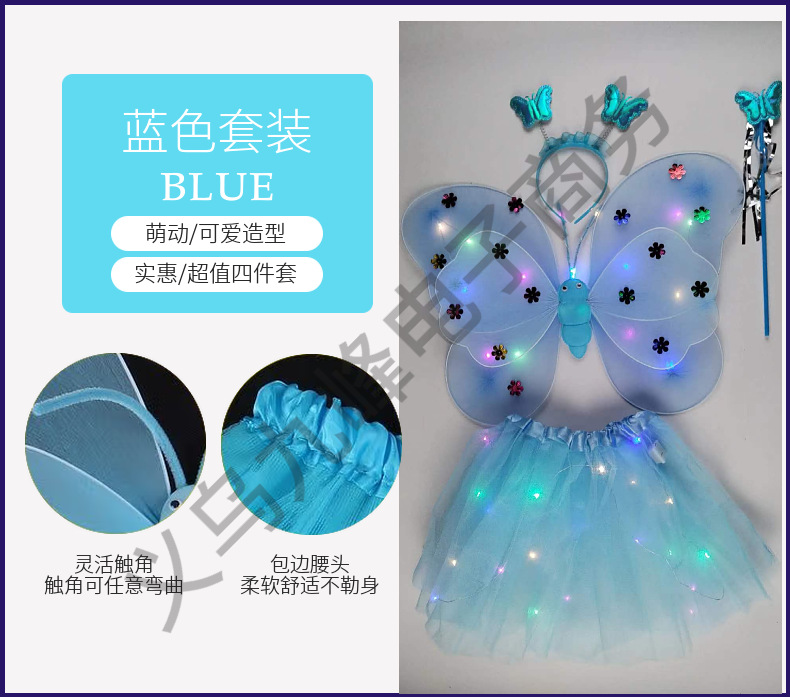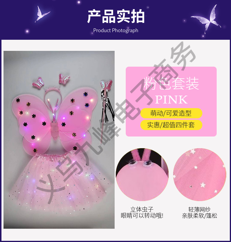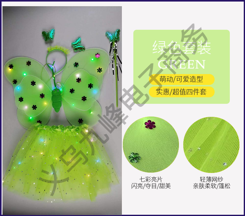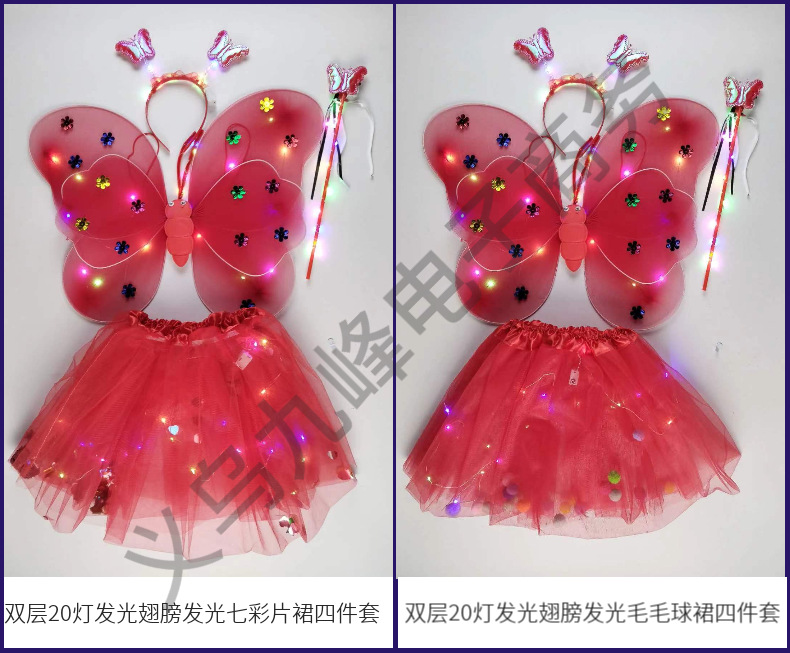 儿童玩具蝴蝶翅膀发光蝴蝶翅膀亮片蝴蝶翅膀双层蝴蝶翅膀发光翅膀