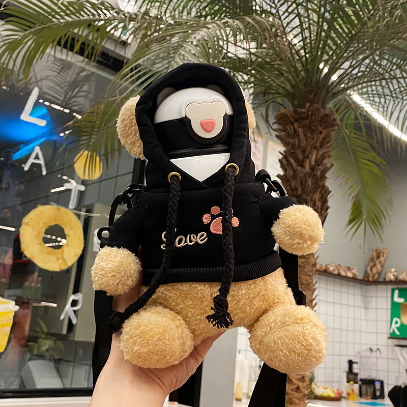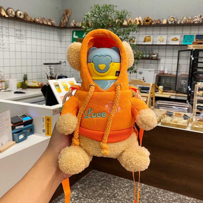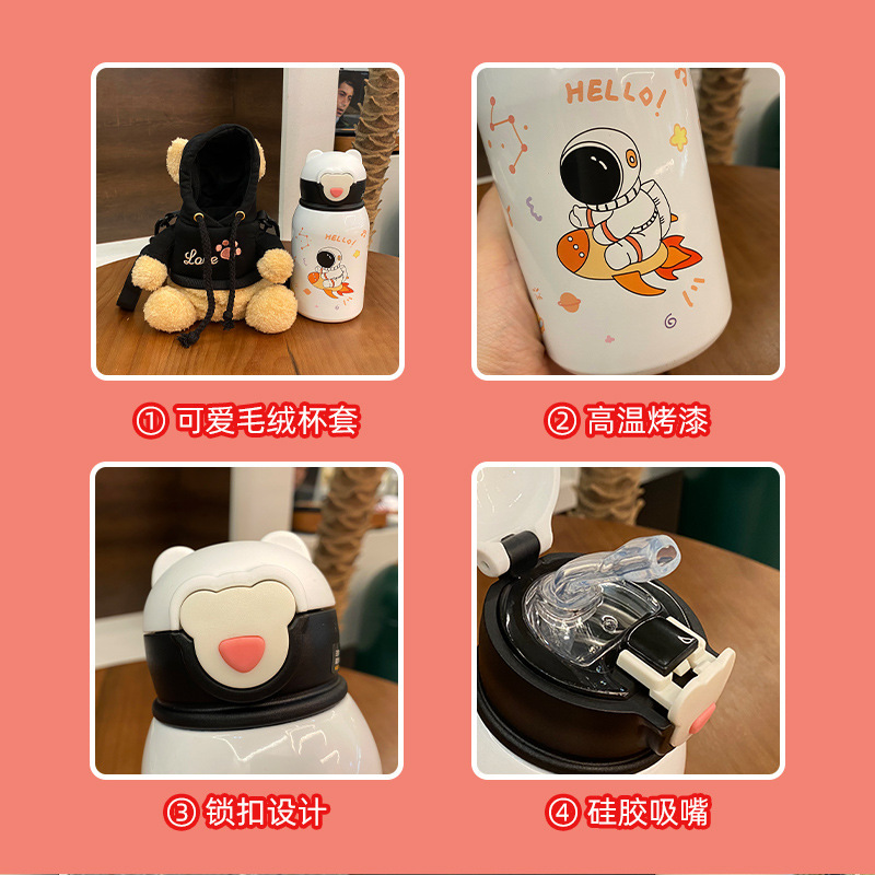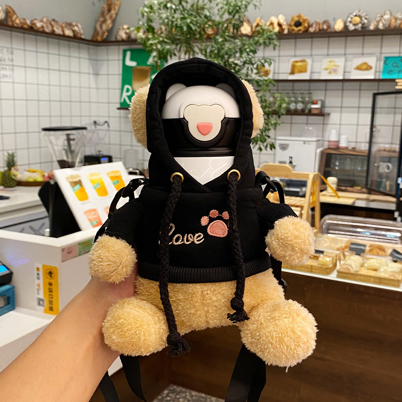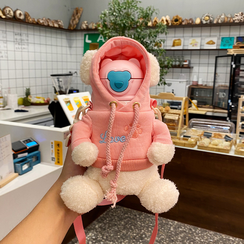 可爱毛绒保温杯吸管女学生网红小熊成人水杯