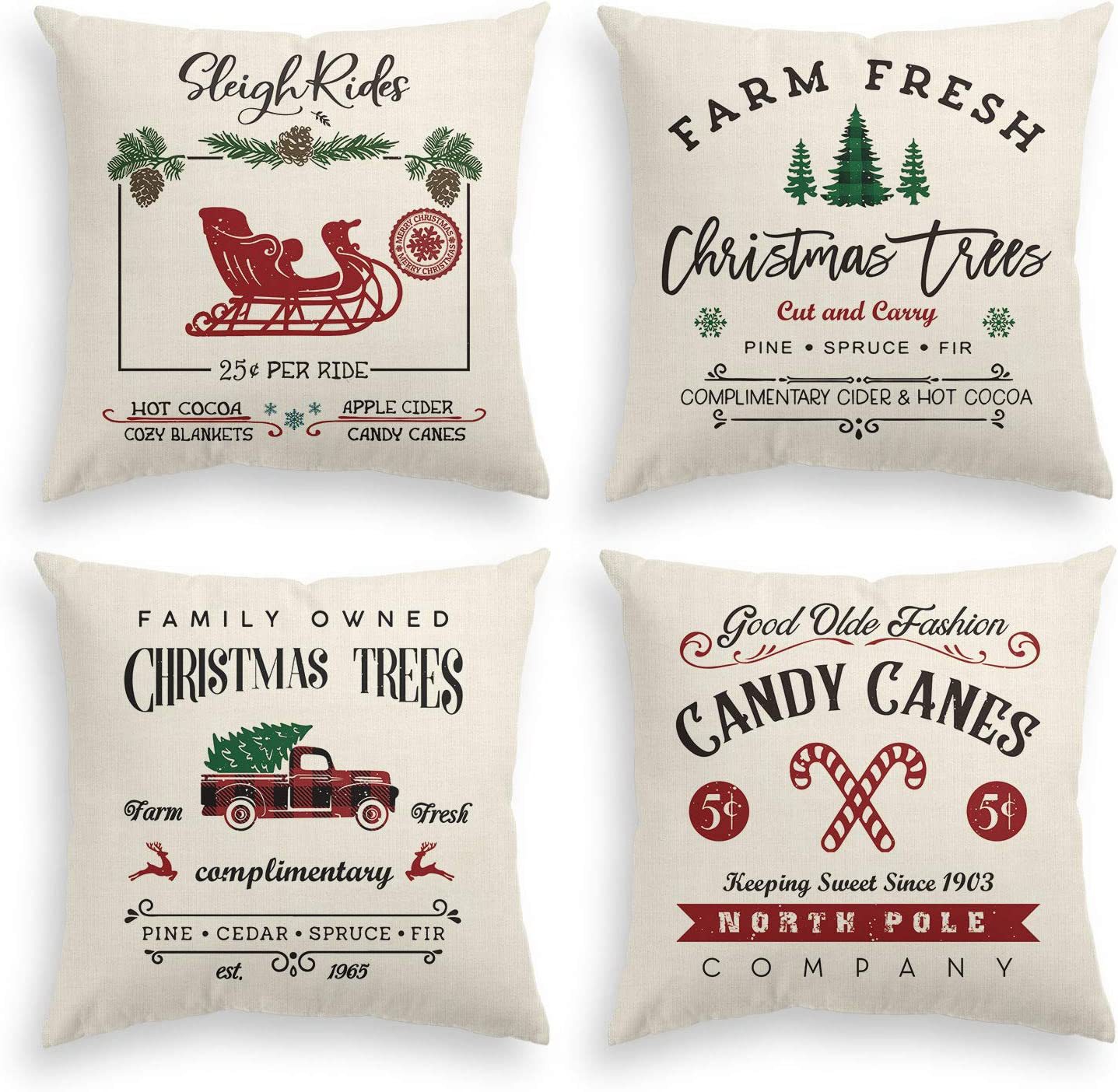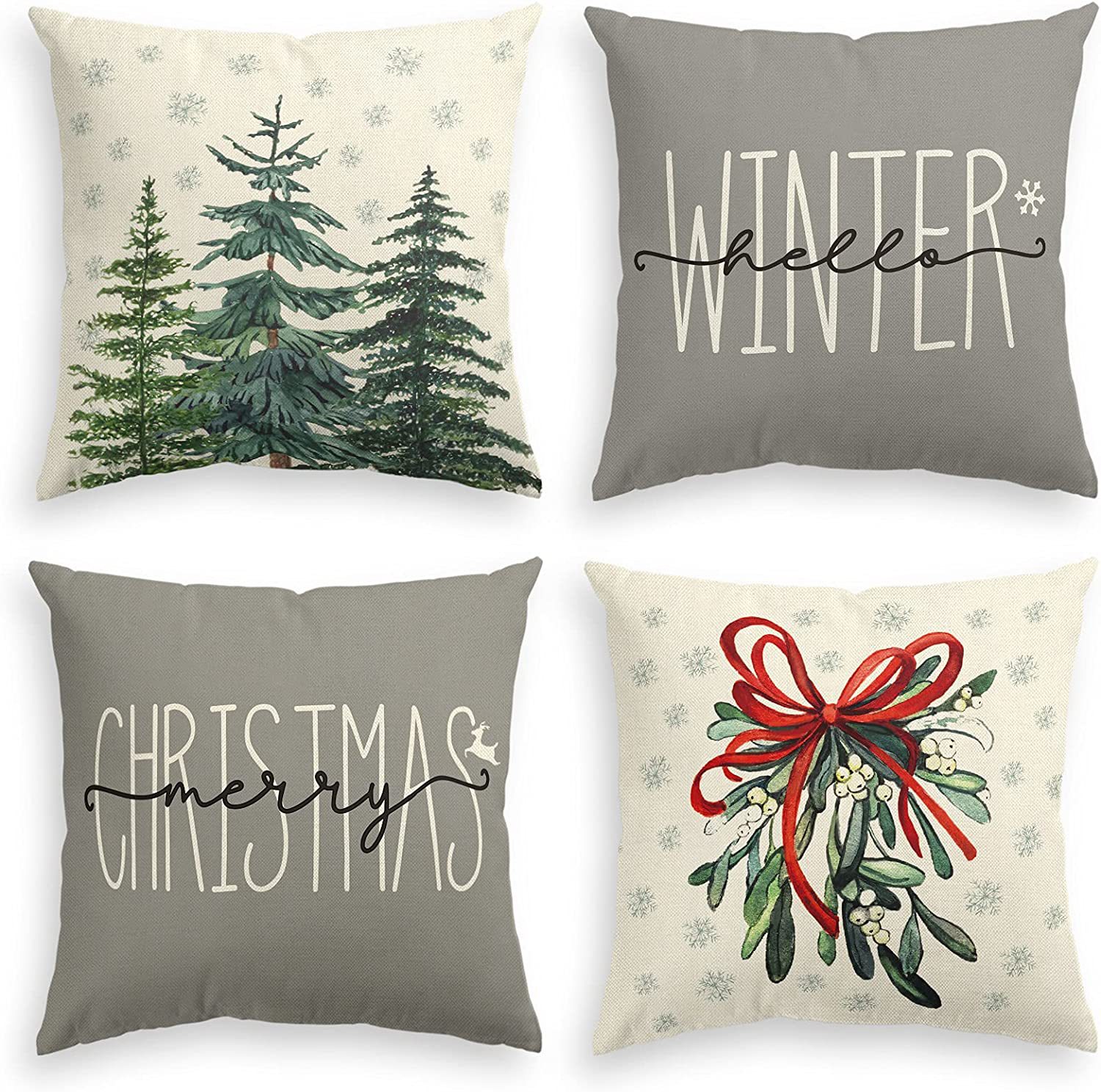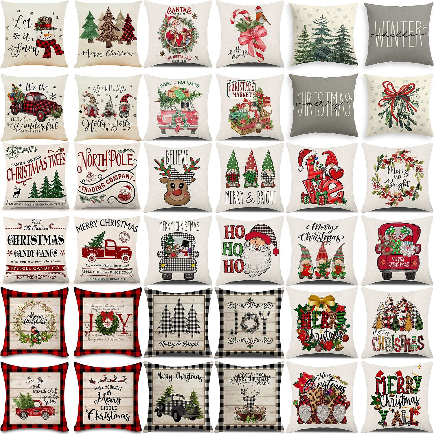 2025亚马逊新款抱枕字母圣诞节抱枕北欧简约靠垫亚麻印花床头靠枕