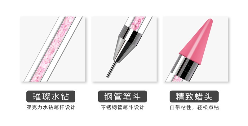 工厂直销8色带钻美甲双头点钻蜡笔 多功能点钻卸钻工具美甲点钻笔