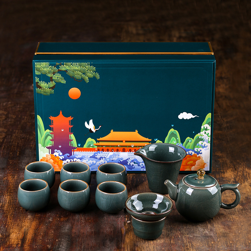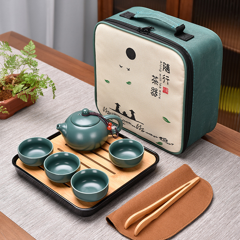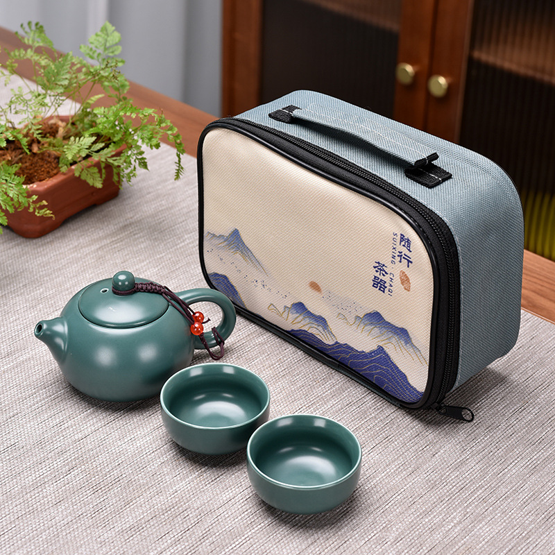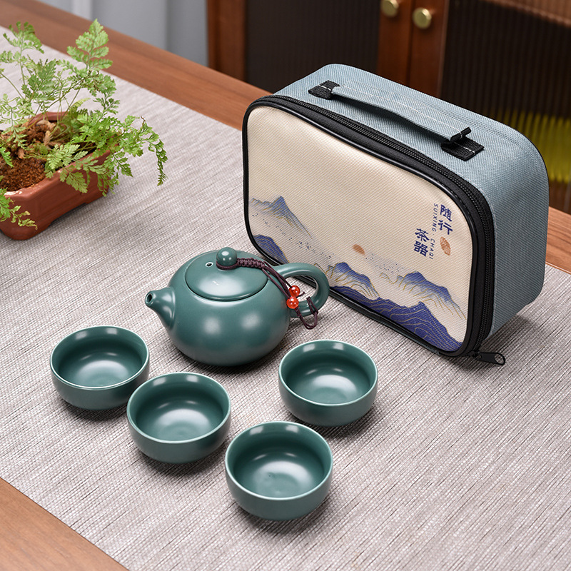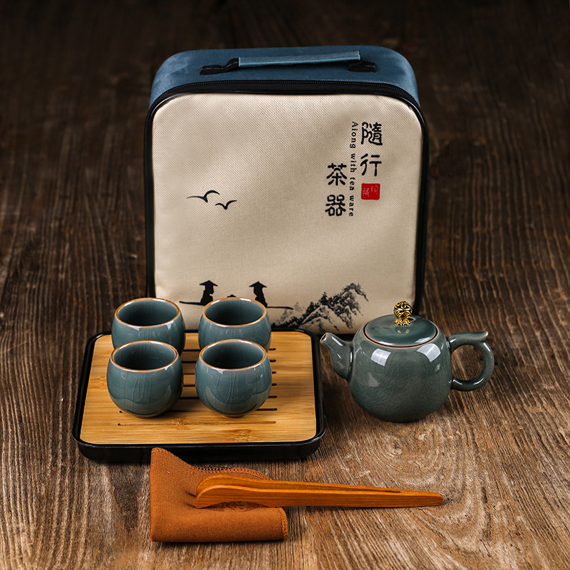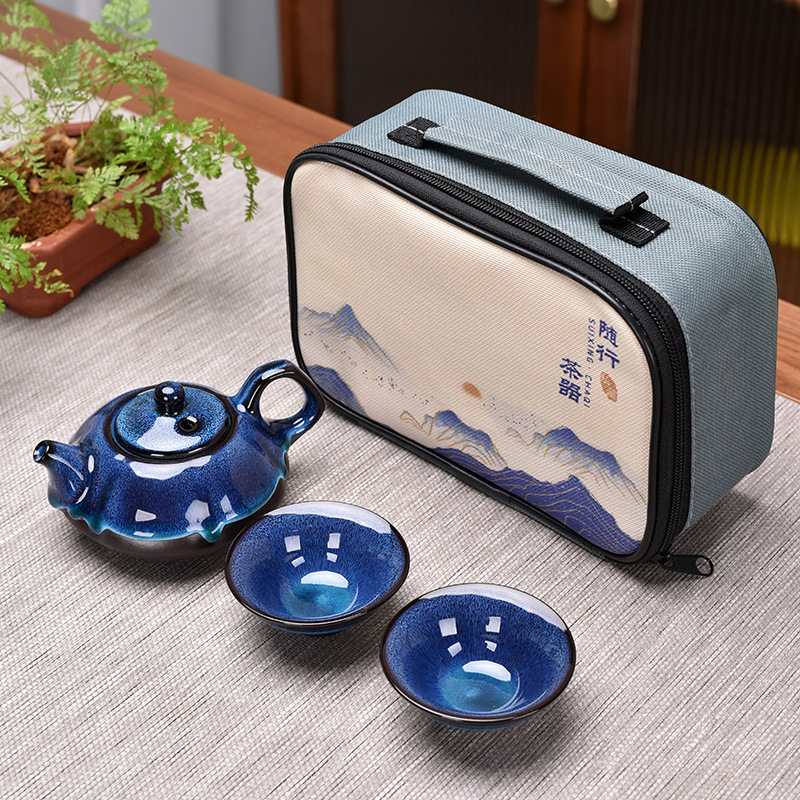 厂家批发定窑亚光窑变旅行一壶四杯茶具功夫套装地产开业企业礼品