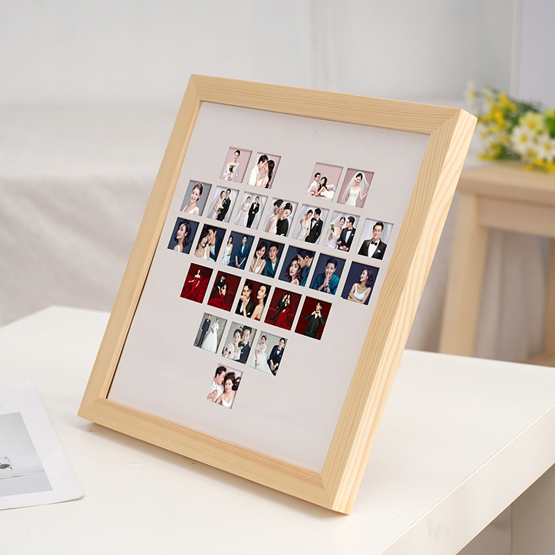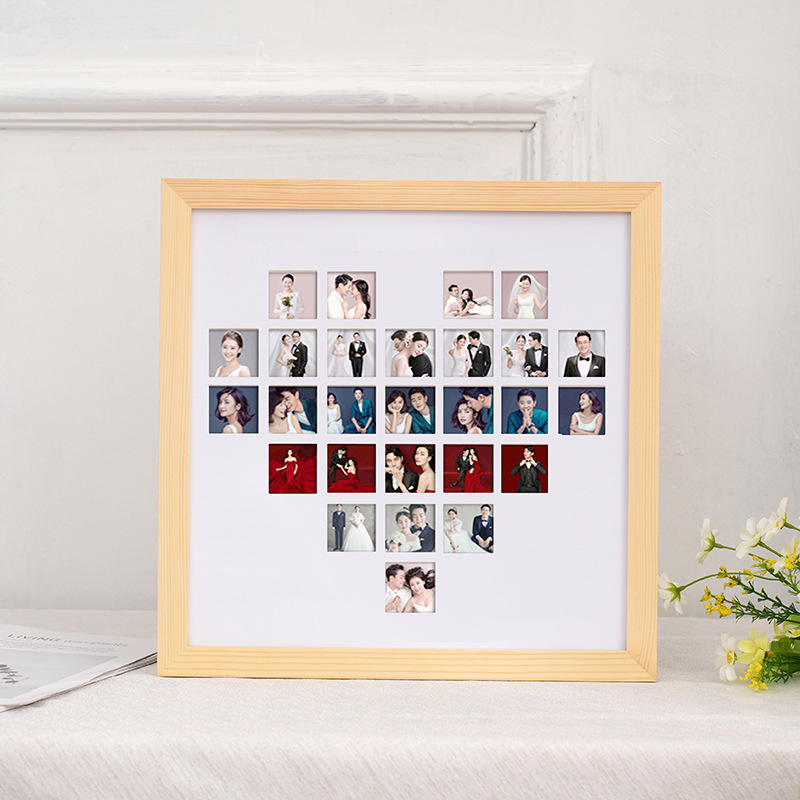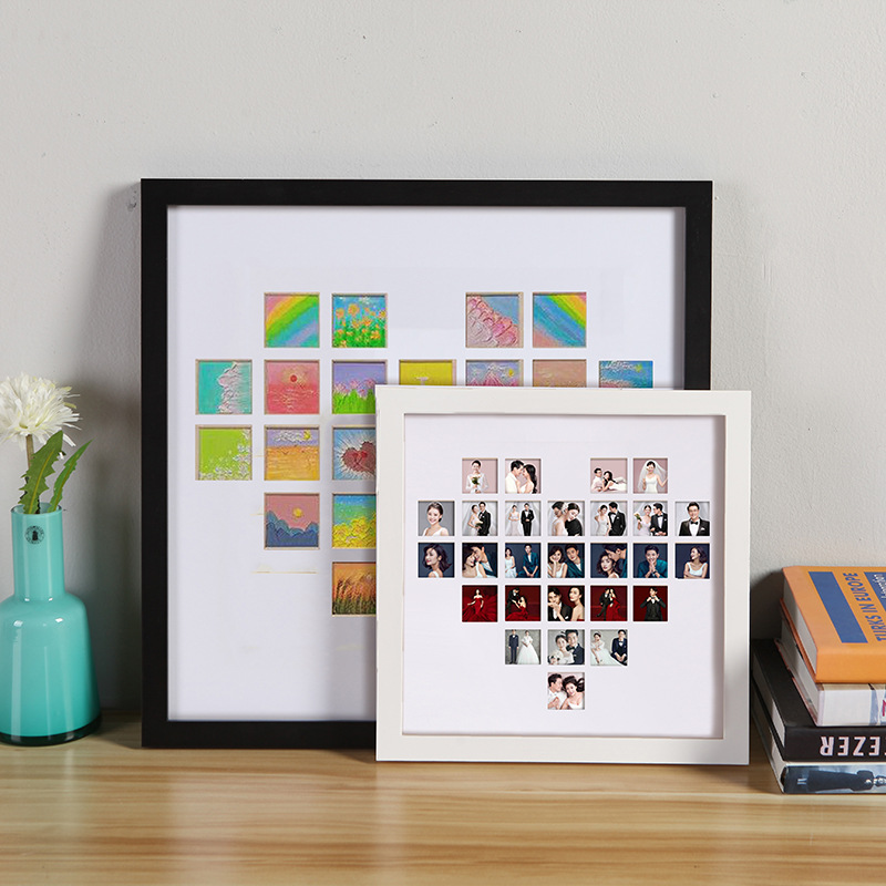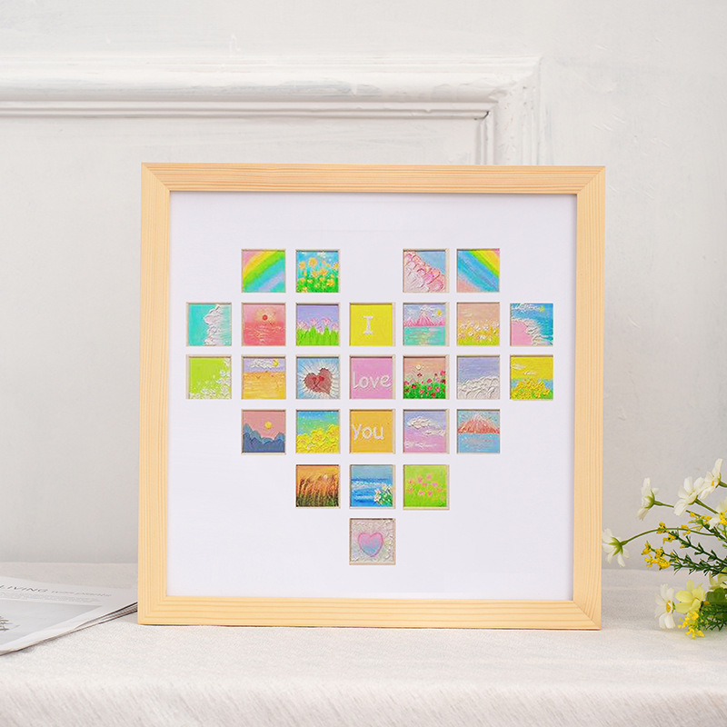 爱心形27宫格油画棒画框diy创意立体摆台镂空开孔数字纪念册相框
