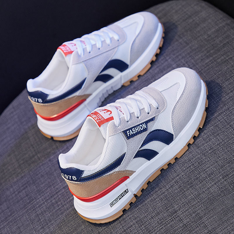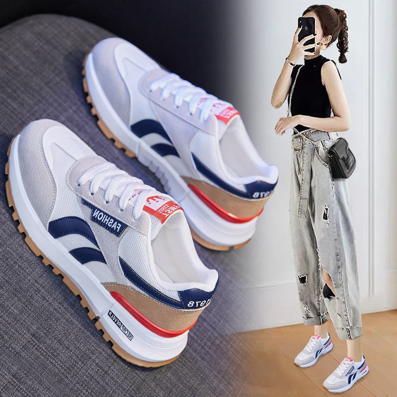 情侣款2025春季新款男士透气网布时尚男鞋女士系带跑步休闲运动鞋