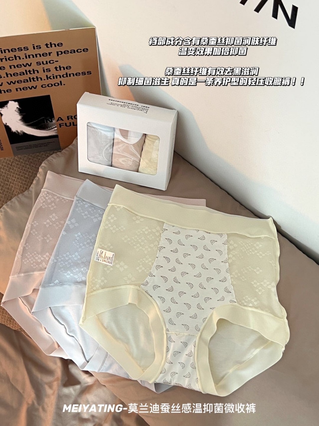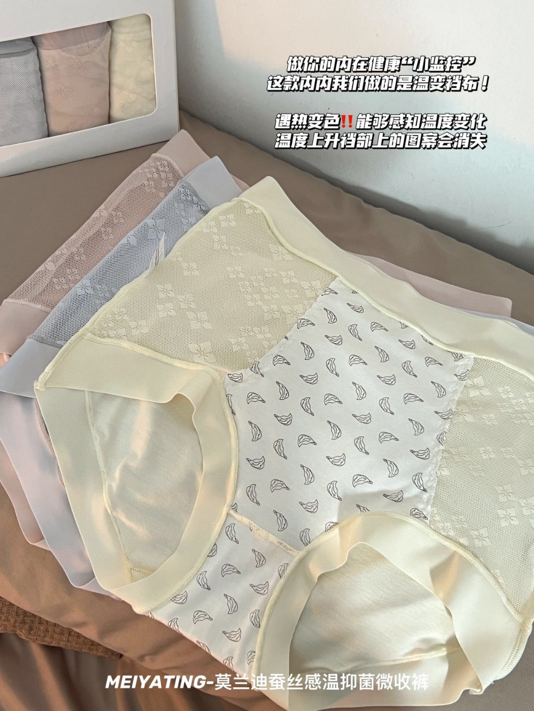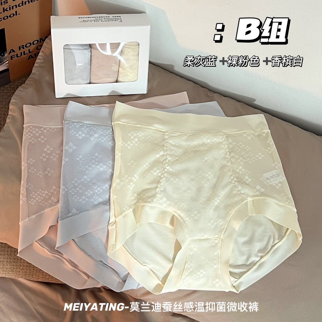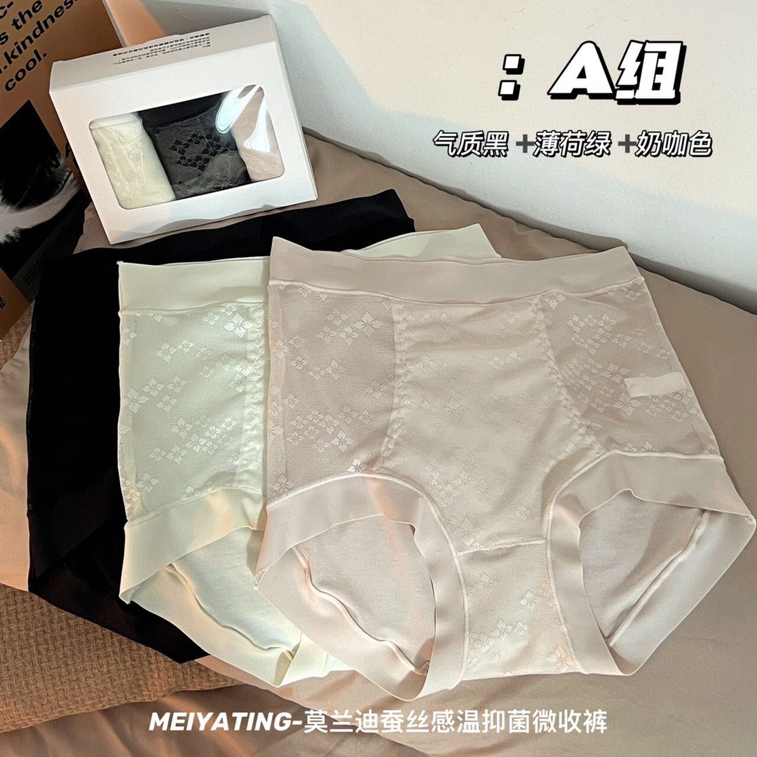 无感不夹臀莫兰迪蚕丝感温内裤女提臀超薄高腰莫代尔三角裤
