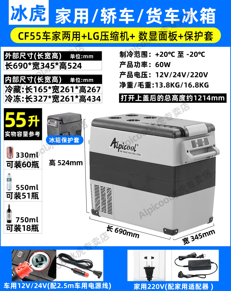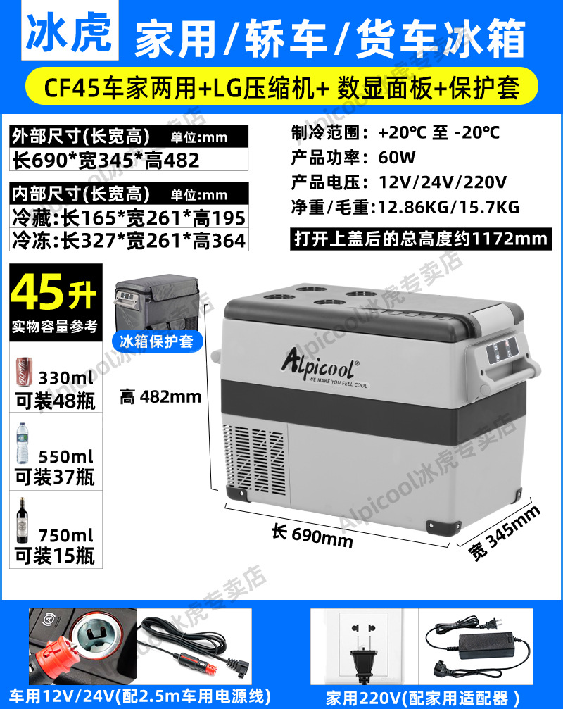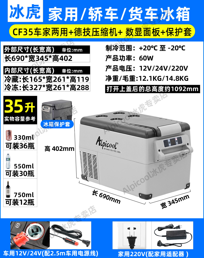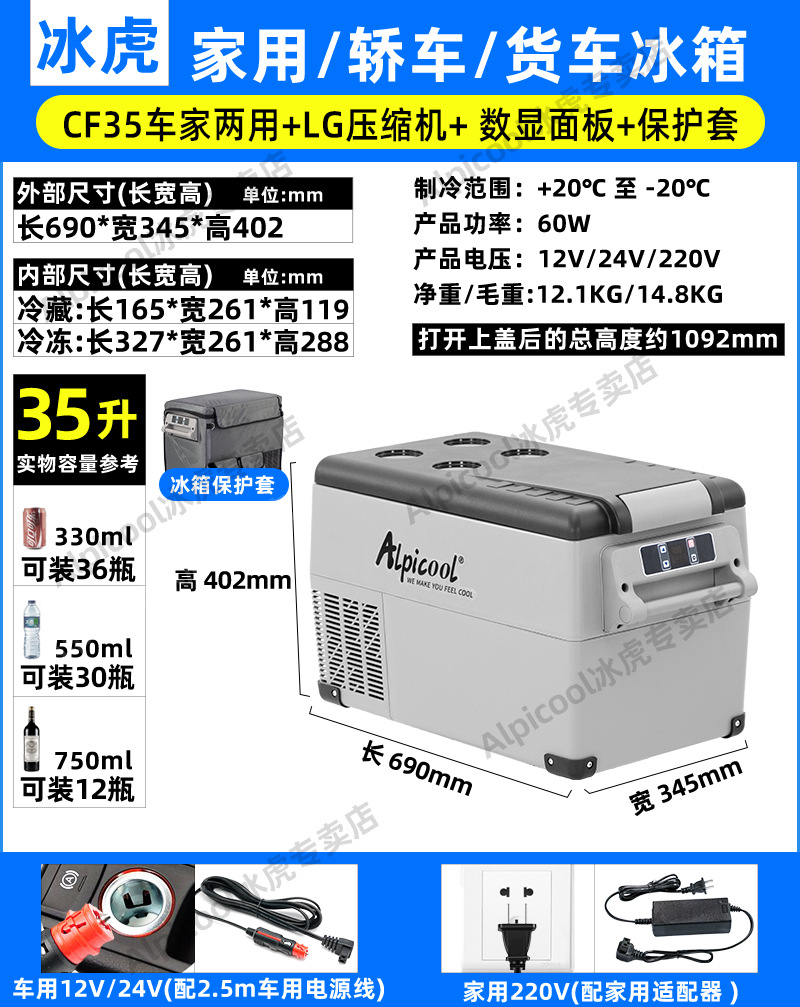 冰虎车载冰箱冷冻冷藏分区车家两用压缩机制冷12V24V大货车小冰箱