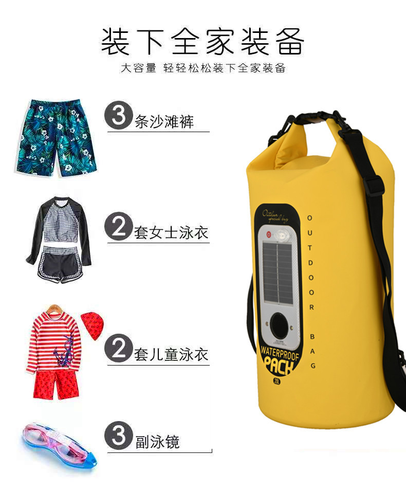 跨境户外运动沙滩防水袋pvc漂浮防水包漂流游泳太阳能音箱水桶包