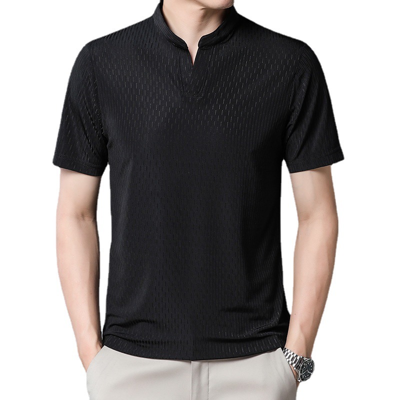 莱栎夏季新款冰丝t恤男士短袖纯色立领青年韩版潮流透气体恤男
