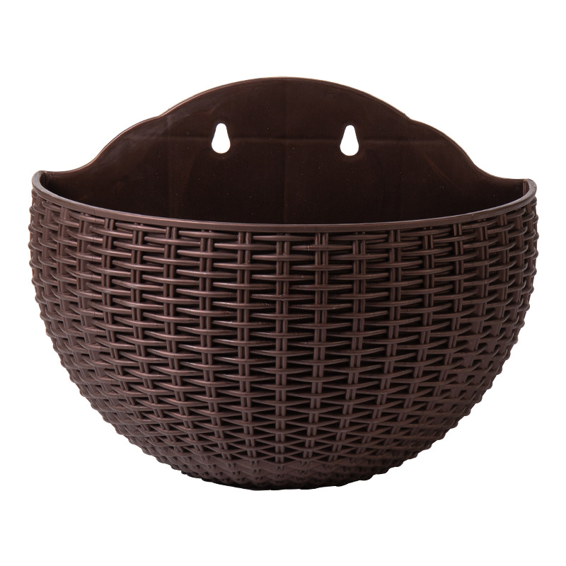 欧式仿藤编壁挂半圆花盆免打孔悬挂花篮阳台懒人花盆挂壁水培花盆