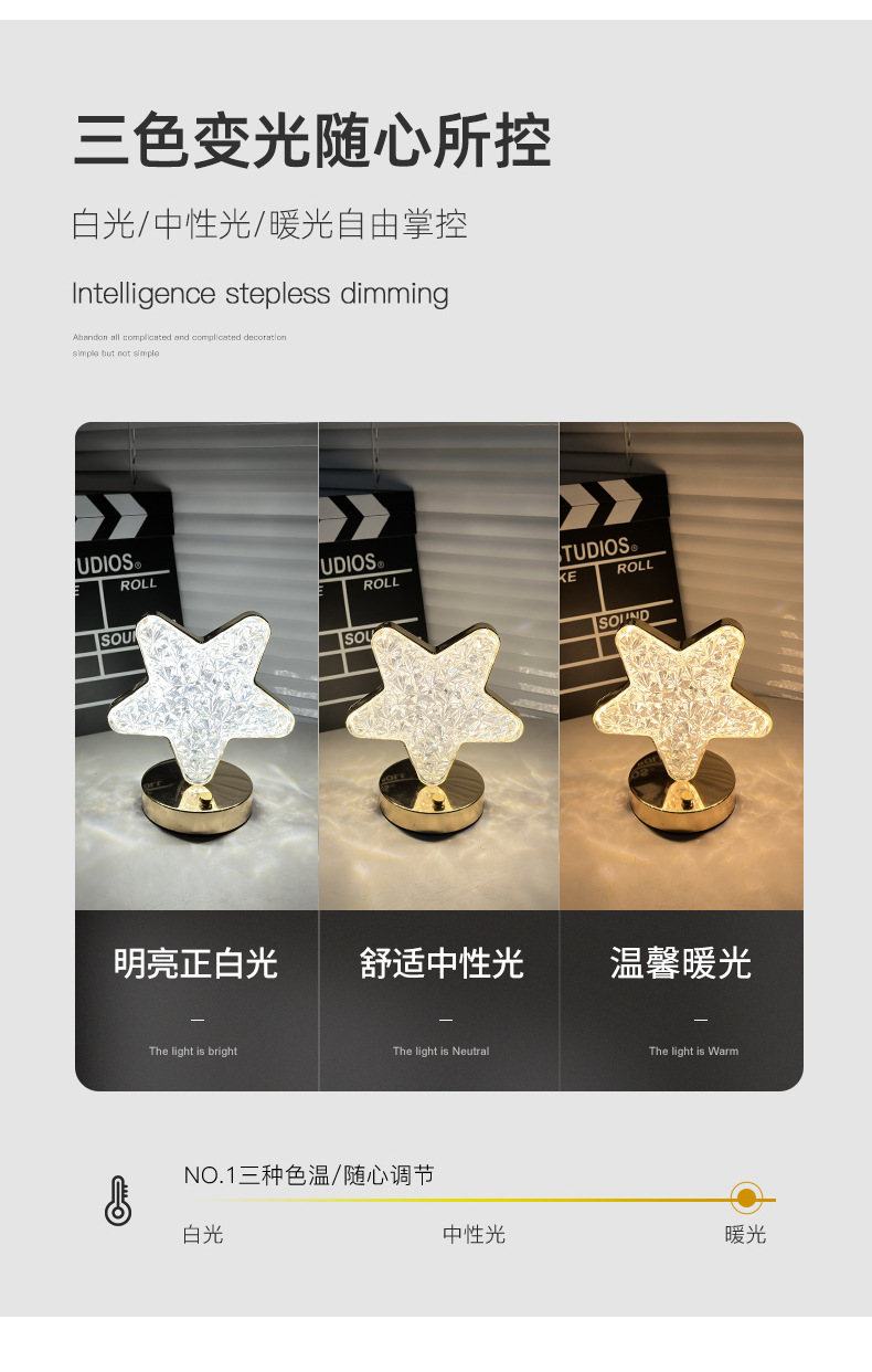 充电装饰台灯 时尚 轻奢便携式大容量触摸三色变光桌面办公夜灯