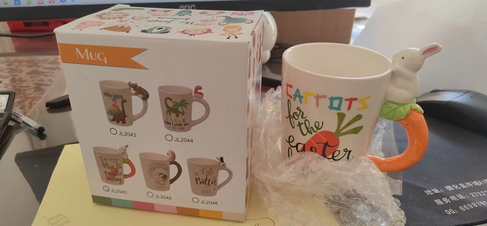 跨境马克杯小兔子造型陶瓷杯卡通水杯小动物马克杯可爱兔子办公杯