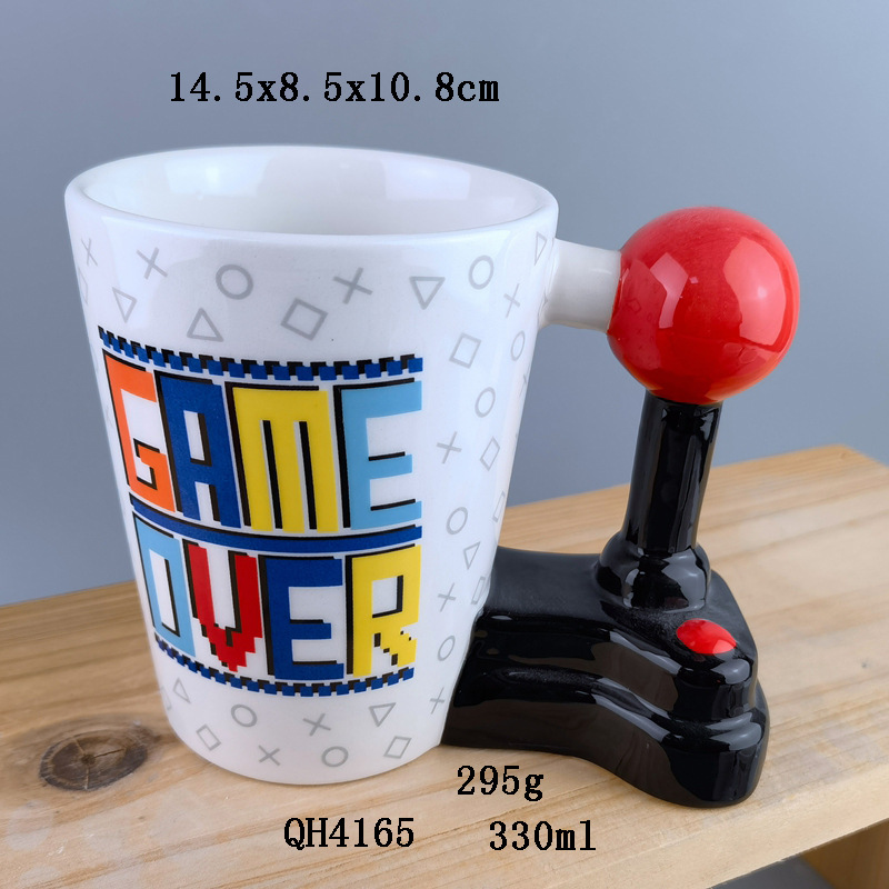 创意游戏手柄陶瓷马克杯彩色字母游戏机摇杆陶瓷水杯卡通咖啡杯子