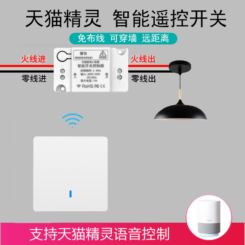 天猫精灵智能通断器免布线随意贴开关手机无线遥控灯具控制器10A
