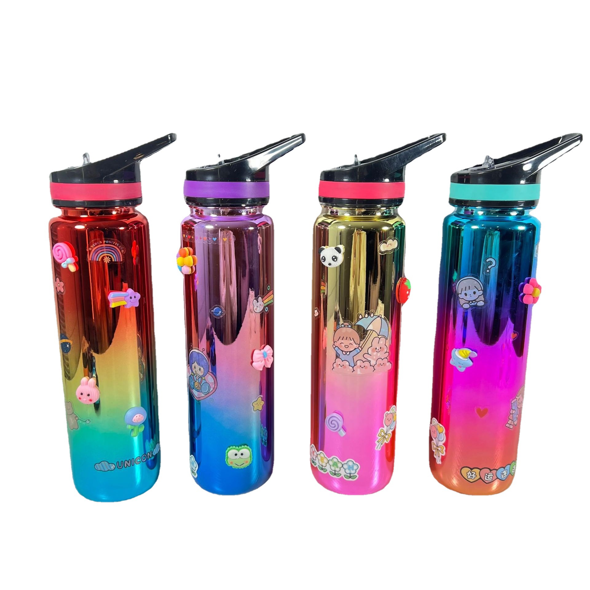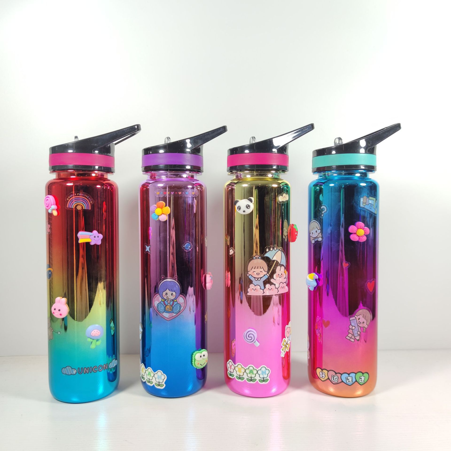 新品现货跨境电镀渐变水杯1000ML大容量水杯渐变电镀吸管太空杯