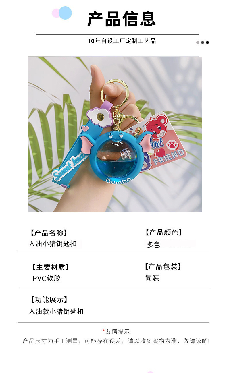 卡通炫彩入油款小飞象钥匙扣液体漂浮漂流瓶挂件汽车包包挂饰礼品