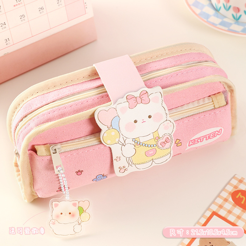 大容量笔袋批发初中小学生简约帆布文具盒萌宠ins风铅笔盒文具袋