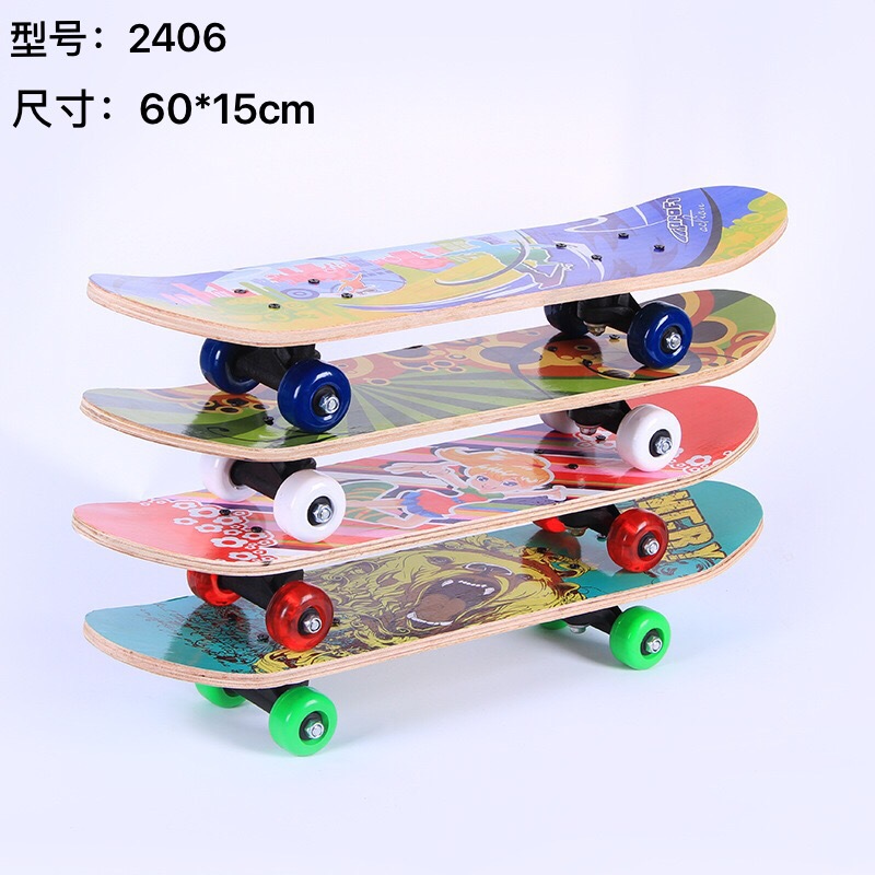 厂家批发儿童四轮滑板枫木双翘2406青少年初学者双面卡通滑板代发