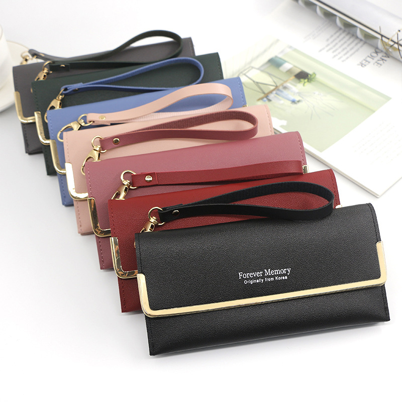 时尚女士长款钱包手带包 简约纯色钱夹手机包零钱包卡包钱夹
