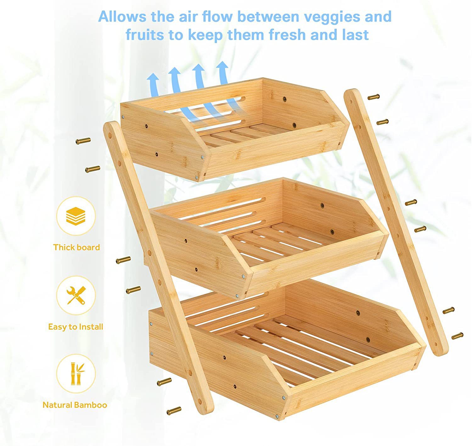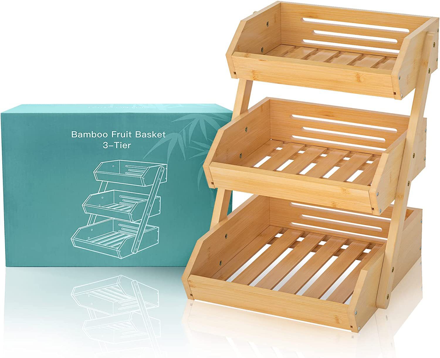竹果篮厨房柜台3层水果篮蔬菜储物架
