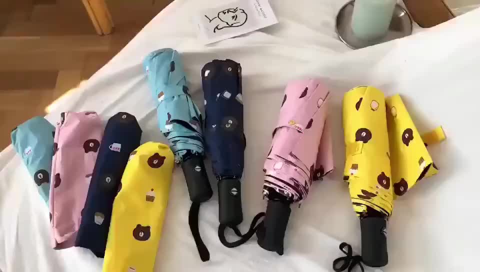 小熊三折黑胶伞太阳伞自动伞折叠防晒遮阳伞雨伞卡通全自动雨伞