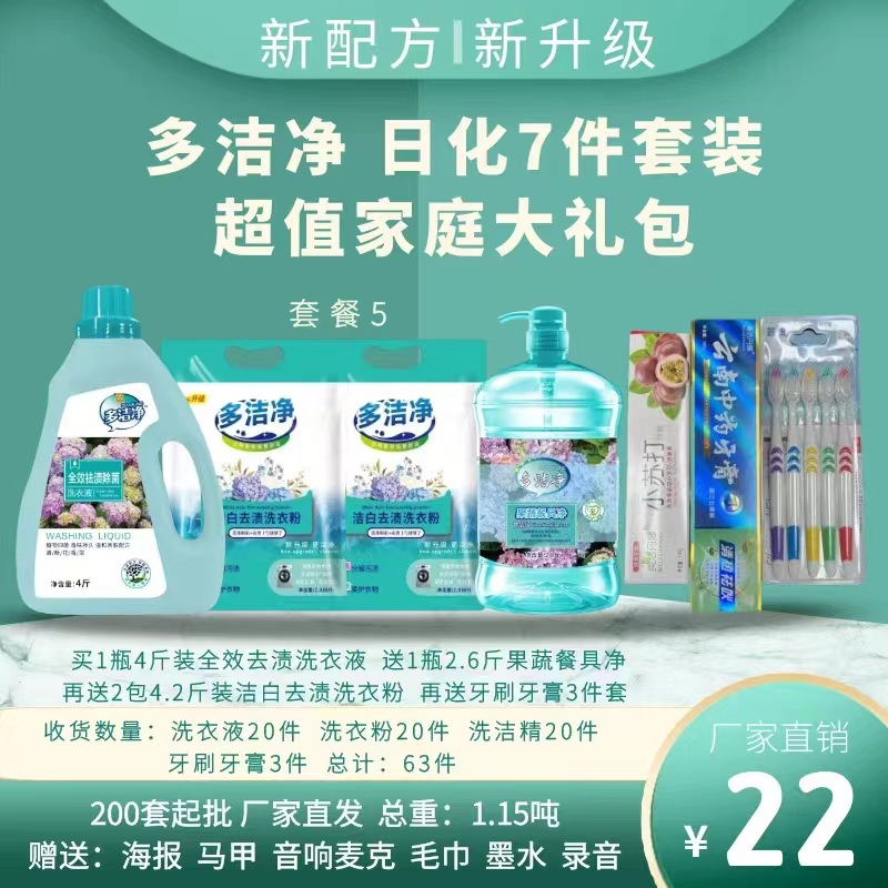 日化7件套,日化6件套5件套等共6个组合,下单按照套餐表起批量下单,7件套牙膏从义乌发出,洗衣液出河北厂家直接发出,批发不包邮,货走物流自提,运费到付,液体日化产品不支持退货调换服务,建议者慎拍。