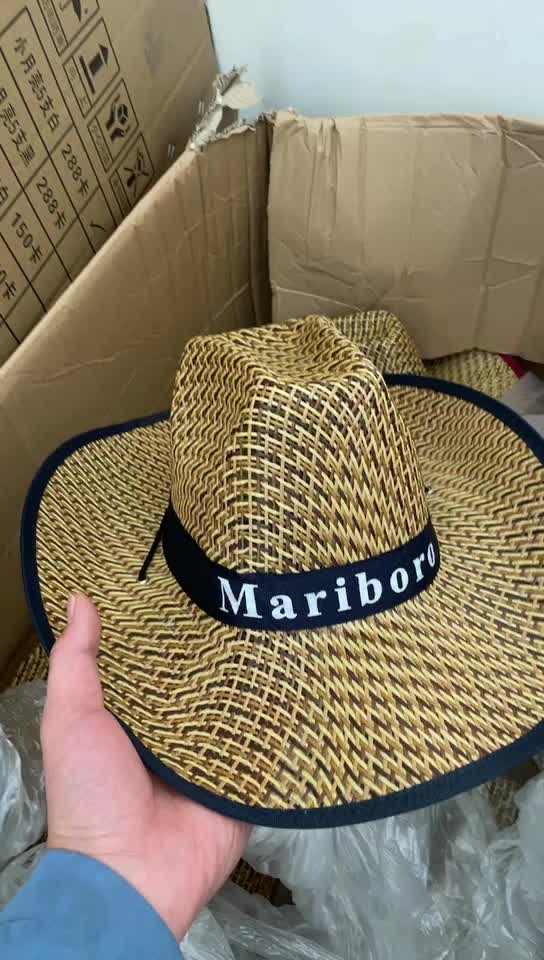 2022草席礼帽子夏天防晒遮阳帽男士三根草牛仔太阳帽钓鱼帽广告帽