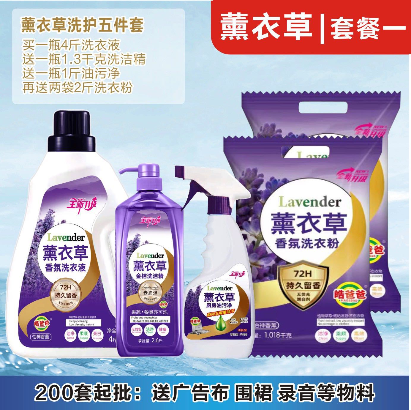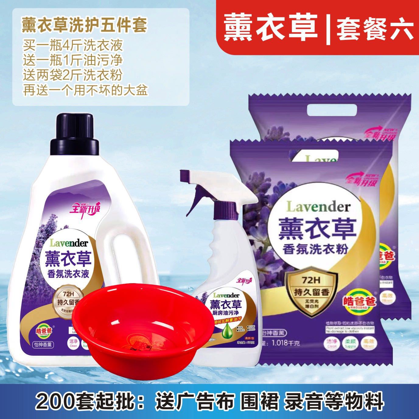 薰衣草日化8款五件套系列厂家批发 江湖地摊洗衣液护色清洁留香