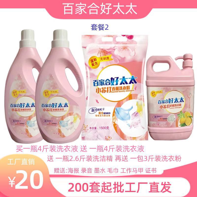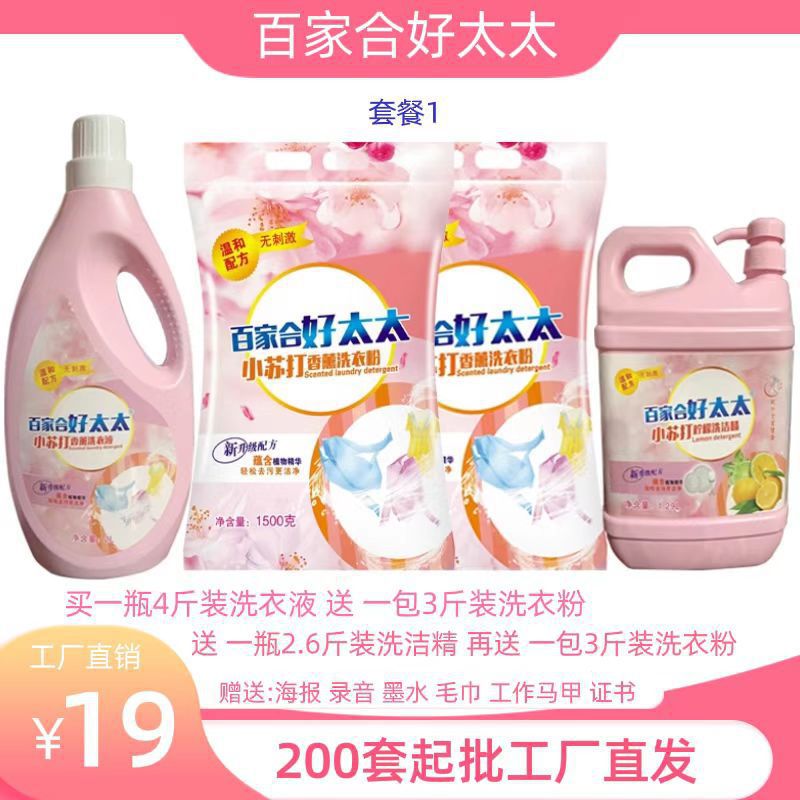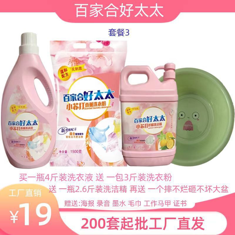 百家合洗衣液批发厂家日化四件套地摊批发洗衣液洗衣粉洗洁精套装